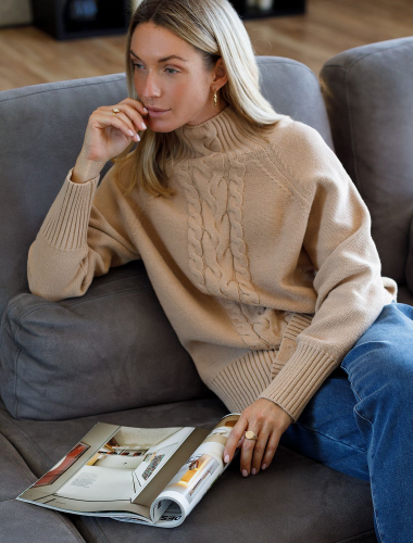 Свитер фактурной вязки с узором косы