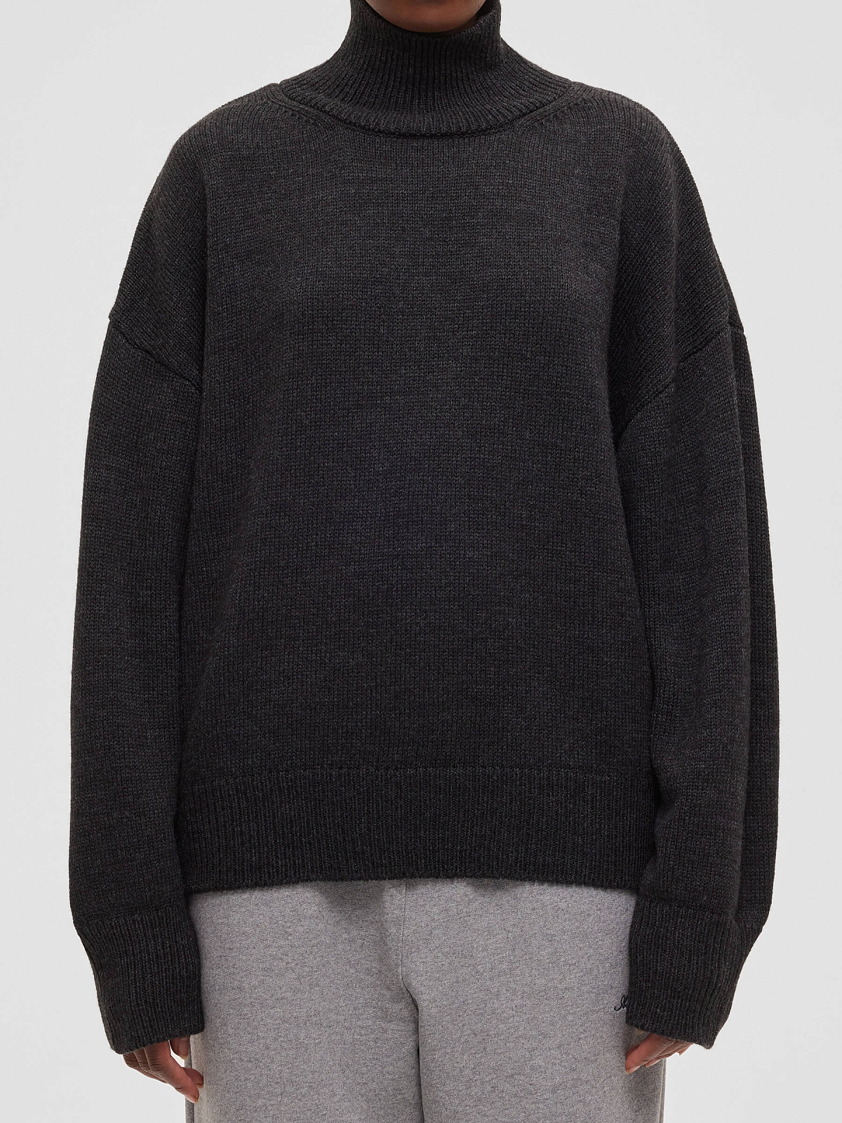 Свитер свободного кроя со спущенной линией плеча — наш неизменный хит продаж уже 9 лет. Дизайн с классическим воротником-стойкой и резинками на рукавах, а также по низу изделия делает свитер универсальной вещью для вашего базового гардероба.