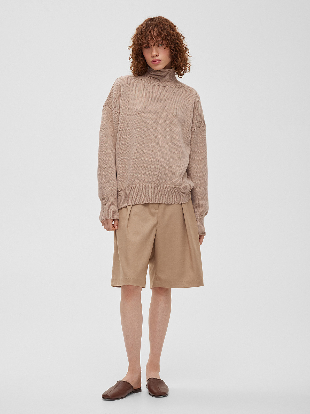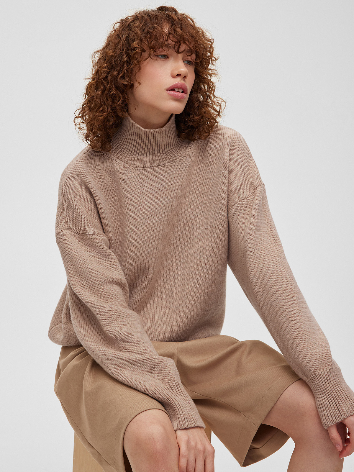 Свитер свободного кроя, бежевый