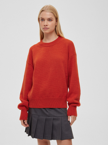 Изготовленный из мягкой шерсти мериноса с добавлением акрила, свитер приятно ощущается на теле. Его можно легко стилизовать с платьями или носить как самостоятельный элемент образа в сочетании с брюками, юбками или джинсами.