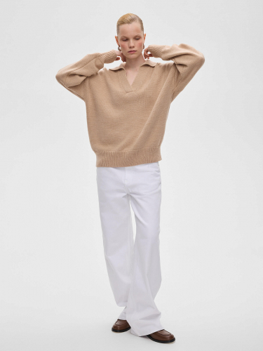 Свитер свободного кроя, бежевый
