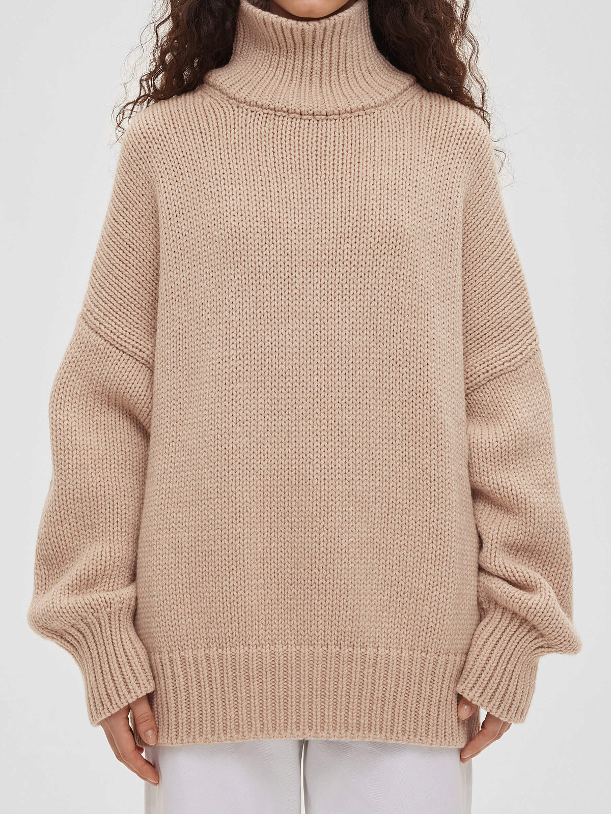 Свитер свободного кроя крупной вязки, бежевый