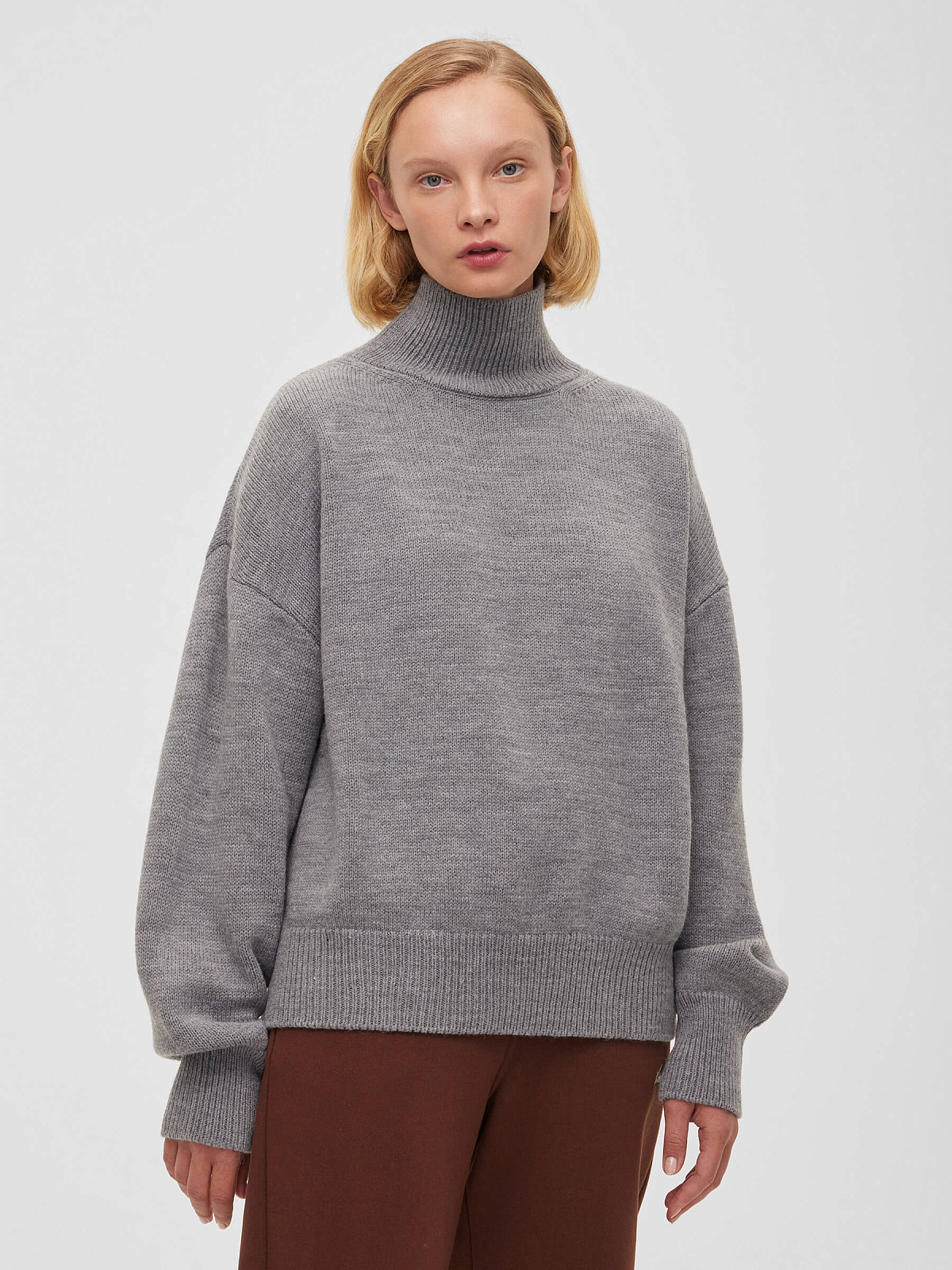 Свитер свободного кроя со спущенной линией плеча — наш неизменный хит продаж уже 9 лет. Дизайн с классическим воротником-стойкой и резинками на рукавах, а также по низу изделия делает свитер универсальной вещью для вашего базового гардероба.