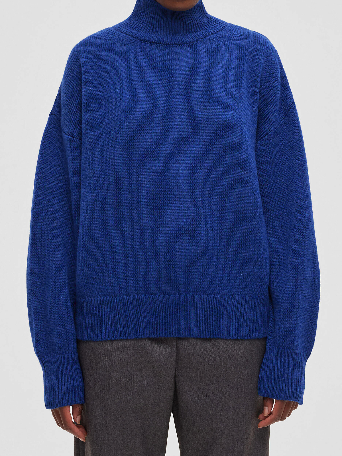 Свитер свободного кроя со спущенной линией плеча — наш неизменный хит продаж уже 9 лет. Дизайн с классическим воротником-стойкой и резинками на рукавах, а также по низу изделия делает свитер универсальной вещью для вашего базового гардероба.