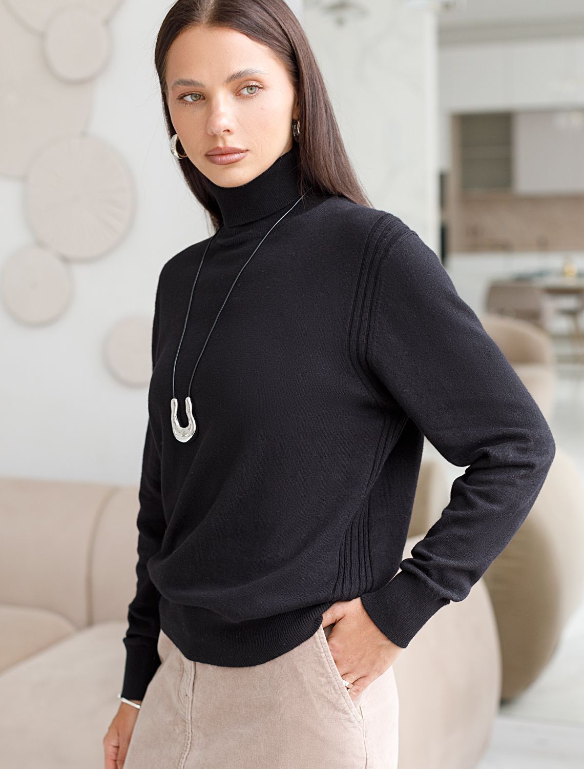 Свитер тонкой вязки выполнен из хлопка с добавлением кашемира. Лаконичная модель дополнена декоративными швами и металлическим логотипом бренда. Мягкая и очень приятная пряжа совершенно не колется, сохраняет тепло при этом не перегревая, гарантируя безупречный комфорт.