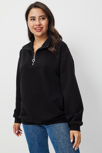 Описание: Свитшот со спущенным плечом силуэта оверсайз отлично впишется в современный городской образ.Молния до кокетки позволит закрыться от вечернего ветра или создаст расслабленный стиль с V-образной расстегнутой горловиной.