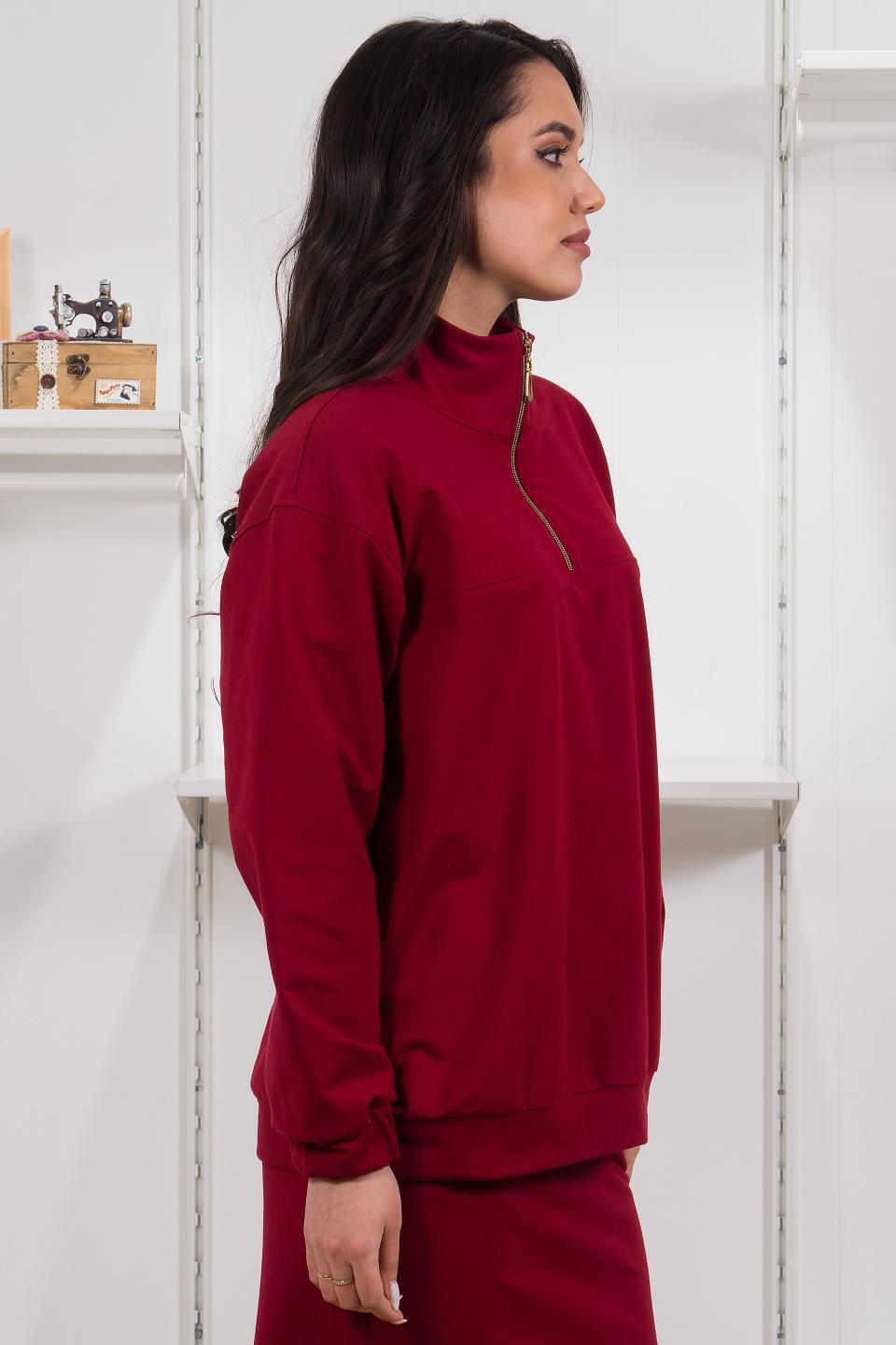 Описание: Свитшот со спущенным плечом силуэта оверсайз отлично впишется в современный городской образ.Молния до кокетки позволит закрыться от вечернего ветра или создаст расслабленный стиль с V-образной расстегнутой горловиной.