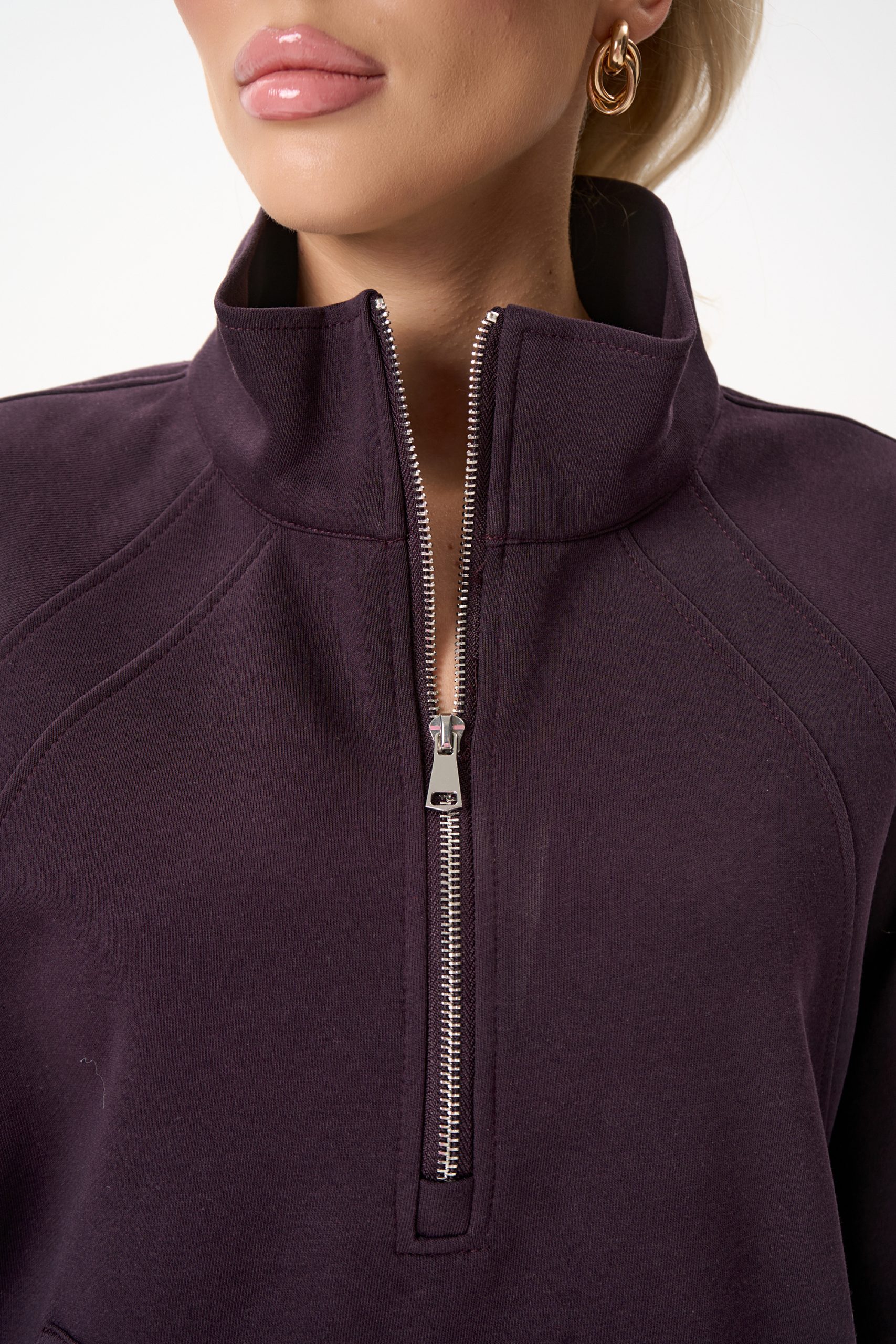 Свитшот Деми сочетает комфорт и элегантную простоту. Лёгкий оверсайз, чистый светло‑серый цвет и аккуратная деталь в виде стойки‑воротника с молнией создают образ, который легко вписывается как в повседневный гардероб, так и в более продуманные ансамбли.