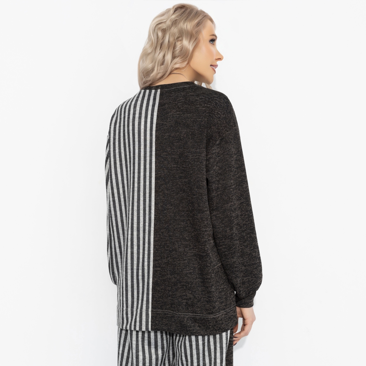 Представь утро, когда не нужно никуда спешить. Ты наливаешь кофе, включаешь любимый плейлист и снимаешь с плечиков любимый свитшот. Он как обещание себе: сегодня без самокритики, только комфорт, мягкие объятия меланжа и забота о себе – не напоказ, а настоящая. Свитшот свободного кроя. Спущенная линия плеча, округлый вырез, комфортная длина идеально подходят для любой фигуры. Контрастные блоки и полоска визуально стройнят. Манжеты на мягкой резинке.