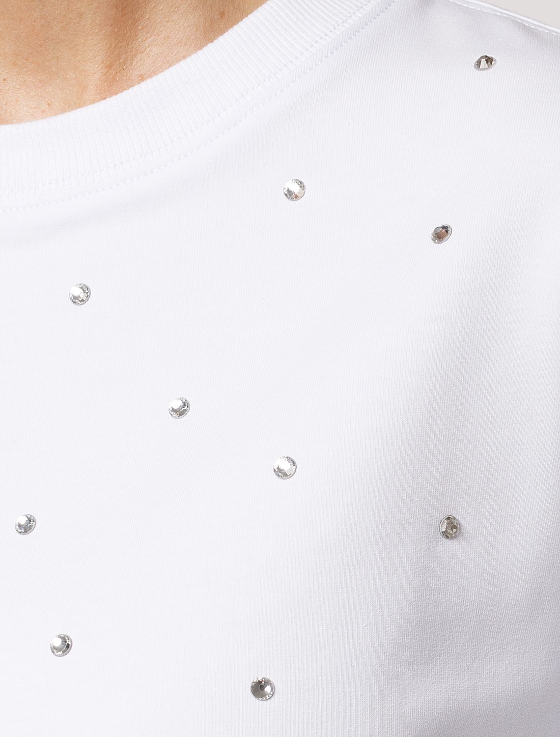 Свитшот из эластичного футера с принтом стразами