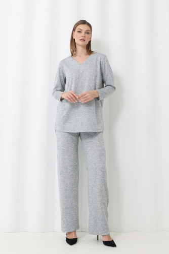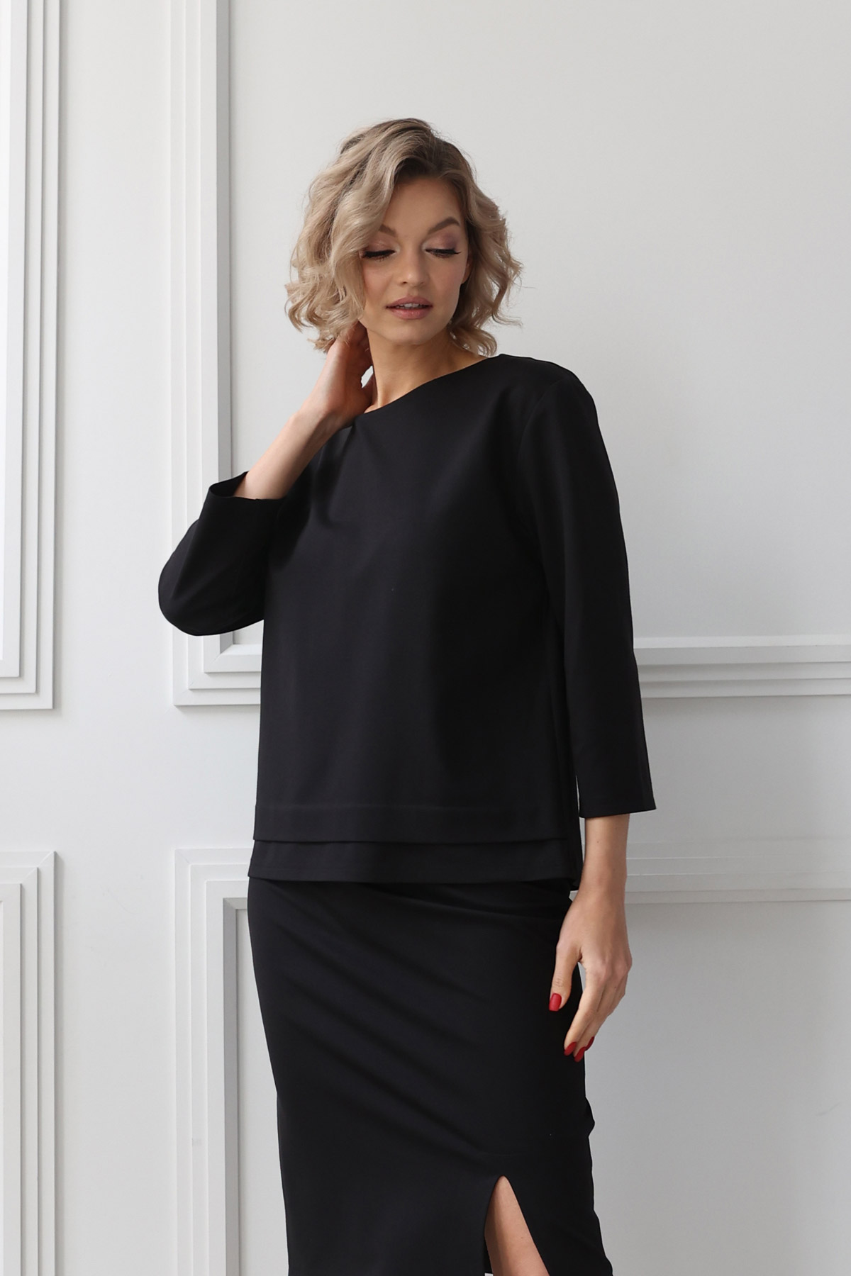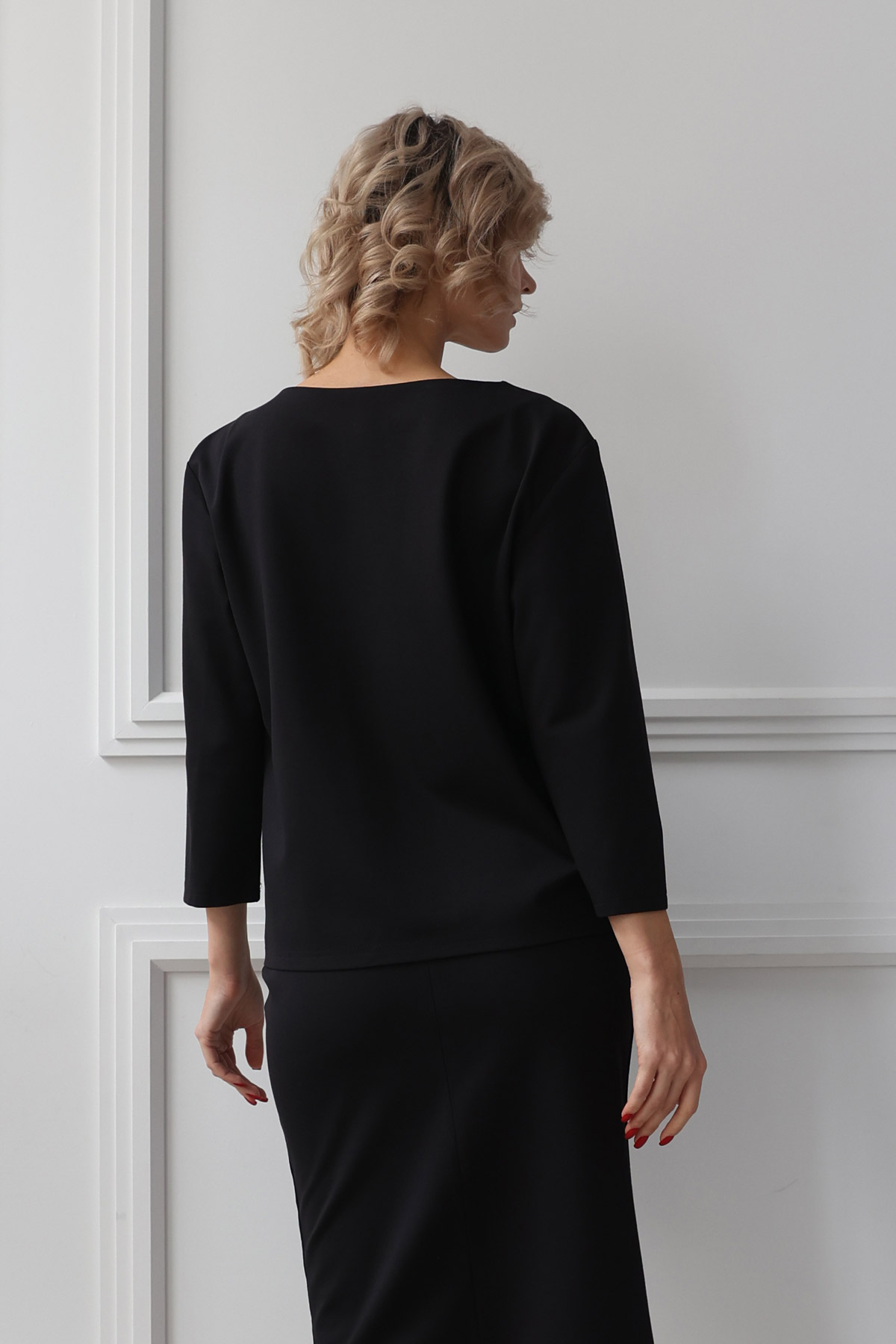Свитшот прямого кроя из плотного трикотажа. Круглая горловина, рукав 7/8 и декоративная отделка по низу переда
