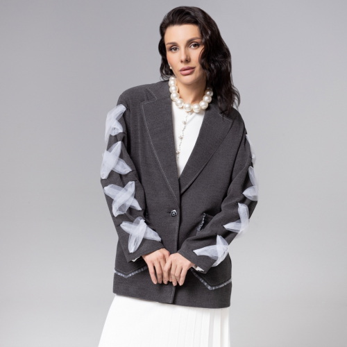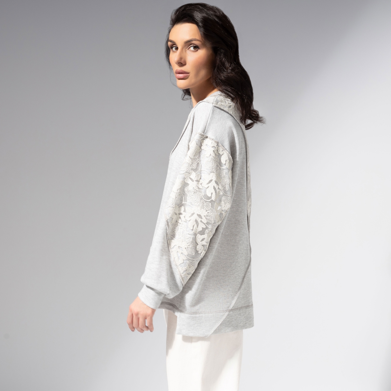 Свитшот комбинированный с кружевом, Границы нежности (серый)
