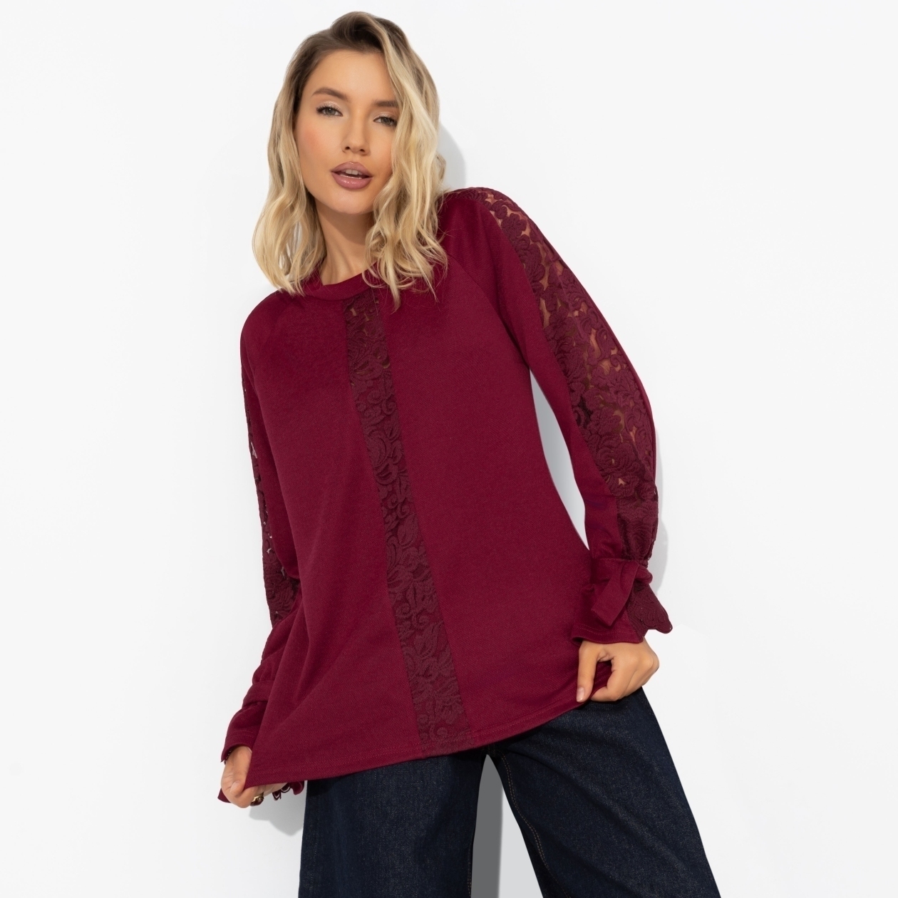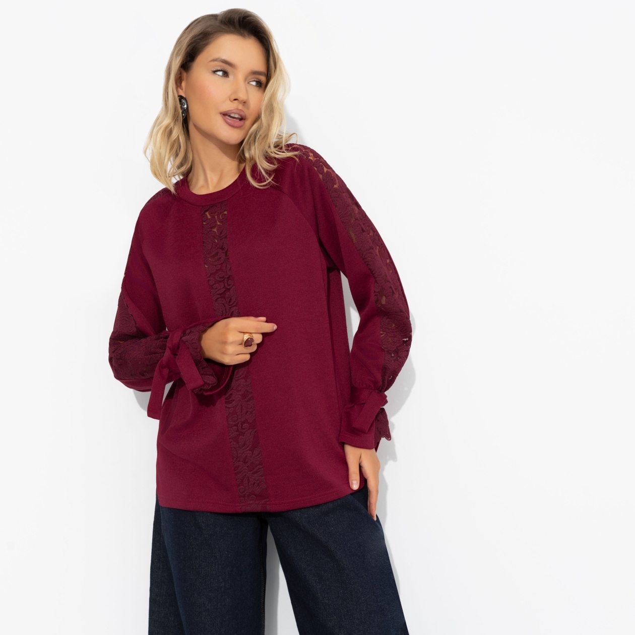 Свитшот комбинированный с кружевом, Приз зрительских симпатий (бордовый)