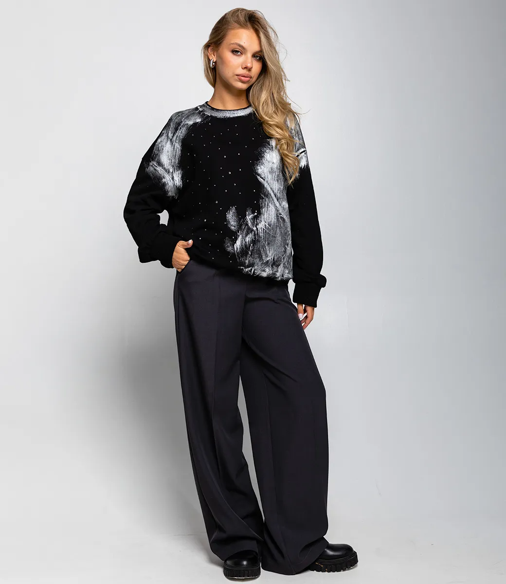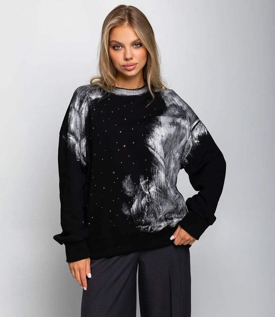 Свитшот – это одежда, которая выделяет яркость и уникальность каждой женщины. Модель стильного свитшота с принтом и стразами станет отличным выбором для ваших привлекательных ярких образов. Его предпочитают покупательницы, которые любят сочетание эксклюзивности и адекватной цены. Фасон подчеркивает привлекательность фигуры. Компания-производитель знает, как разработать модные и оригинальные решения. Для изготовления использована ткань 65% хлопок и 35% полиэстер, которая характеризуется отменным качеством. Даже после многократных стирок изделие не утратит первоначальной красоты. Вы сможете его носить с радостью. Обратите внимание на цвет. Он является глубоким и полностью соответствует фотографии на странице. Чтобы вы были уверены в размере, мы представили на сайте таблицу. Воспользовавшись ею, вы сможете сами обмерить себя и удостовериться. Предложенная нами цена является доступной. Не откажите себе в удовольствии быть стильной и привлекательной! Рост модели 168 см., 89-63-90.