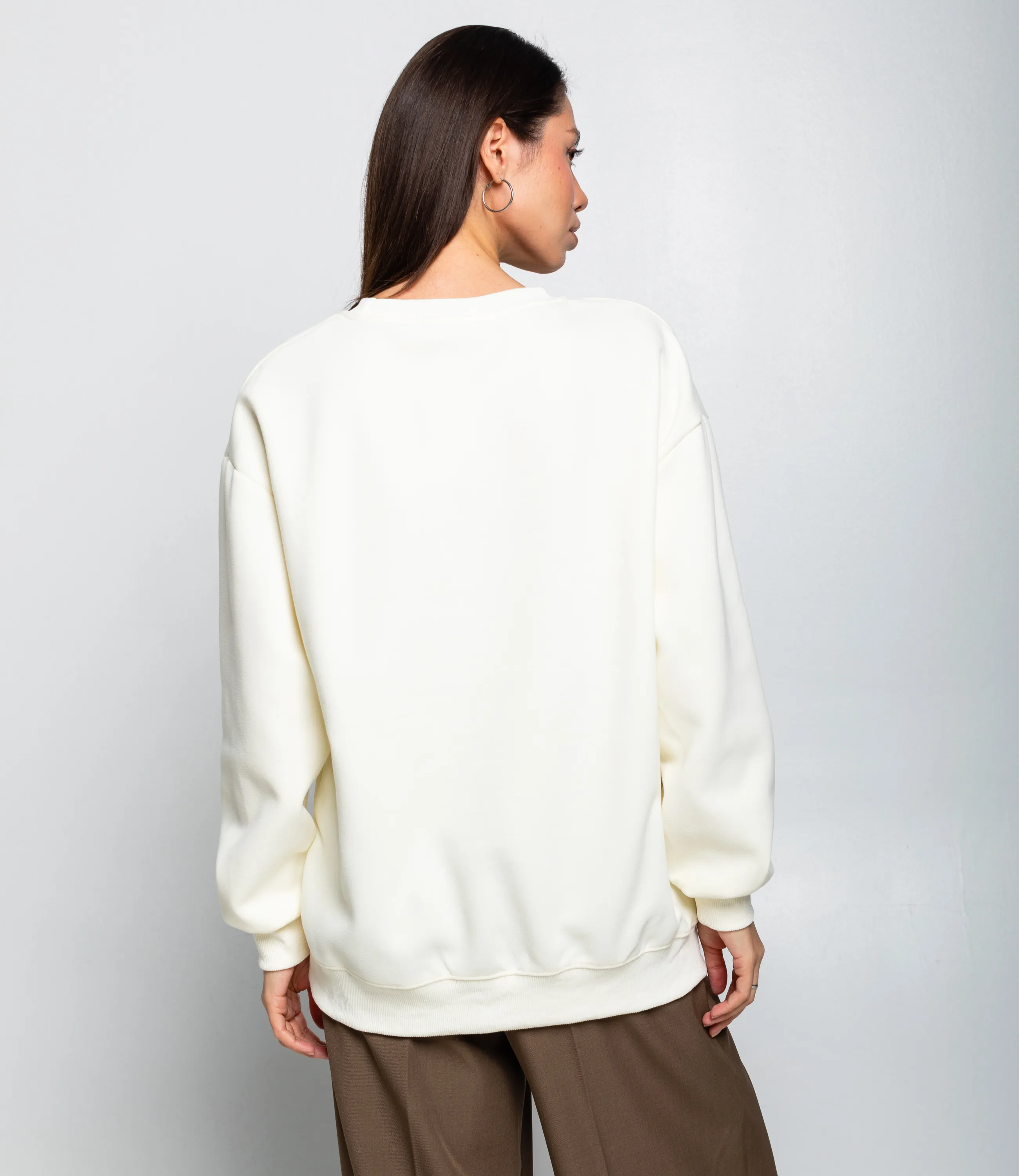 Свитшот — это часть гардероба, которая подчёркивает привлекательность и современную уверенность каждой покупательницы. Свитшот прямого свободного кроя с классической круглой горловиной, выполнен из плотного трикотажного полотна с мягкой, слегка ворсистой внутренней стороной для тепла и комфортной посадки; плечевые швы с опущенной линией плеч придают расслабленный, современный силуэт, рукава длинные, слегка расширенные к плечу и собирающиеся в узкие эластичные манжеты на запястьях. Низ изделия обработан широкой эластичной резинкой, обеспечивающей аккуратную линию подола и удержание формы. Для пошива использована ткань 65% хлопок, 35% полиэстер. Хлопок обеспечивает приятные тактильные ощущения и хорошую воздухопроницаемость, полиэстер добавляет прочности, стойкости цвета и снижает усадку после стирок — в результате изделие дольше сохраняет форму и презентабельный вид при интенсивной эксплуатации. Такая композиция оптимальна для розничной продажи: повышенная износостойкость уменьшает процент рекламаций, а устойчивость цвета гарантирует соответствие образцов и фотографий. Цвета и фактура полностью соответствуют фотографиям в карточке товара, на странице размещена подробная таблица размеров для точного подбора. По запросу предоставляем образцы для оценки качества, гибкие минимальные партии. Рост модели 164 см., 83-61-89.