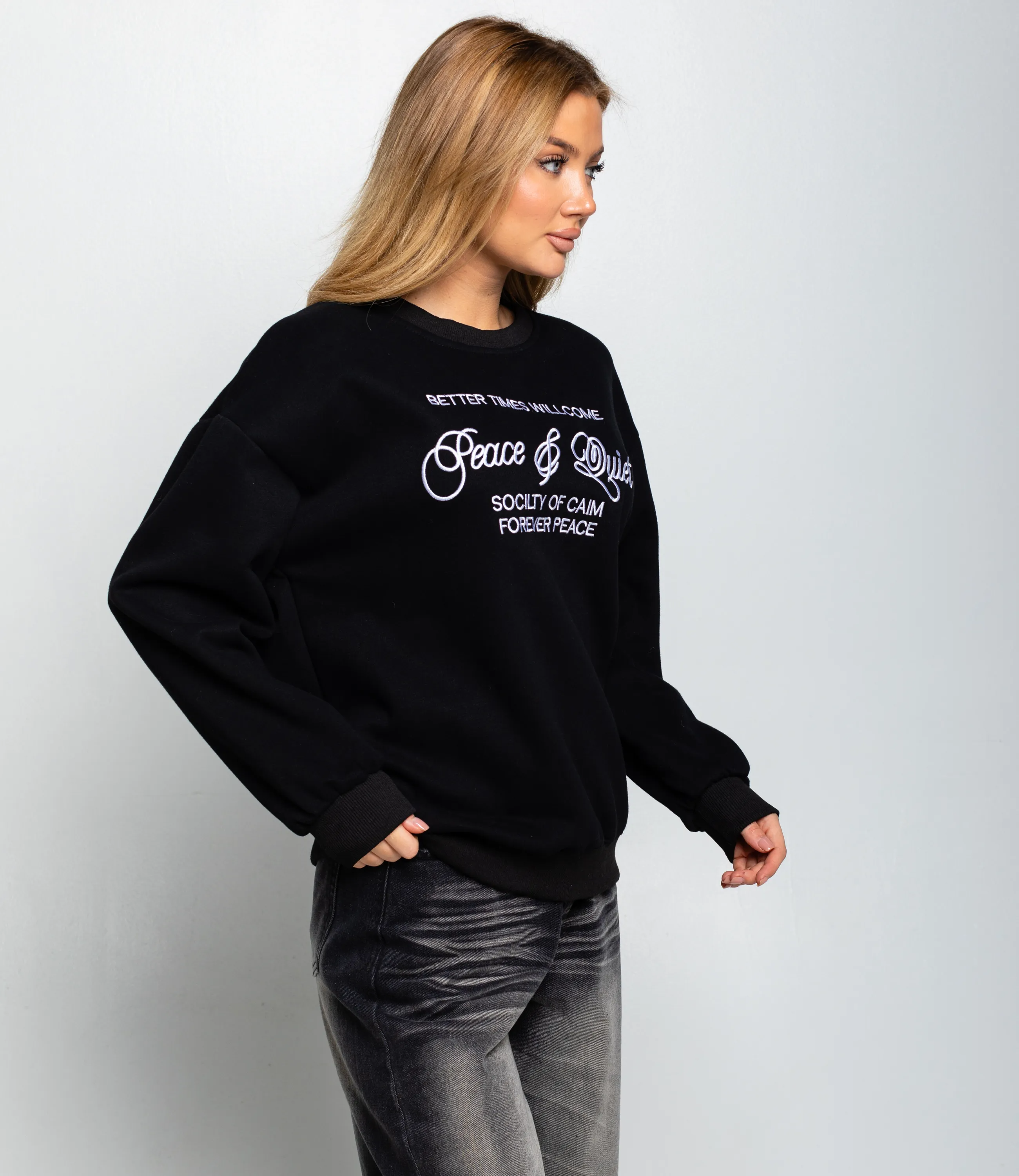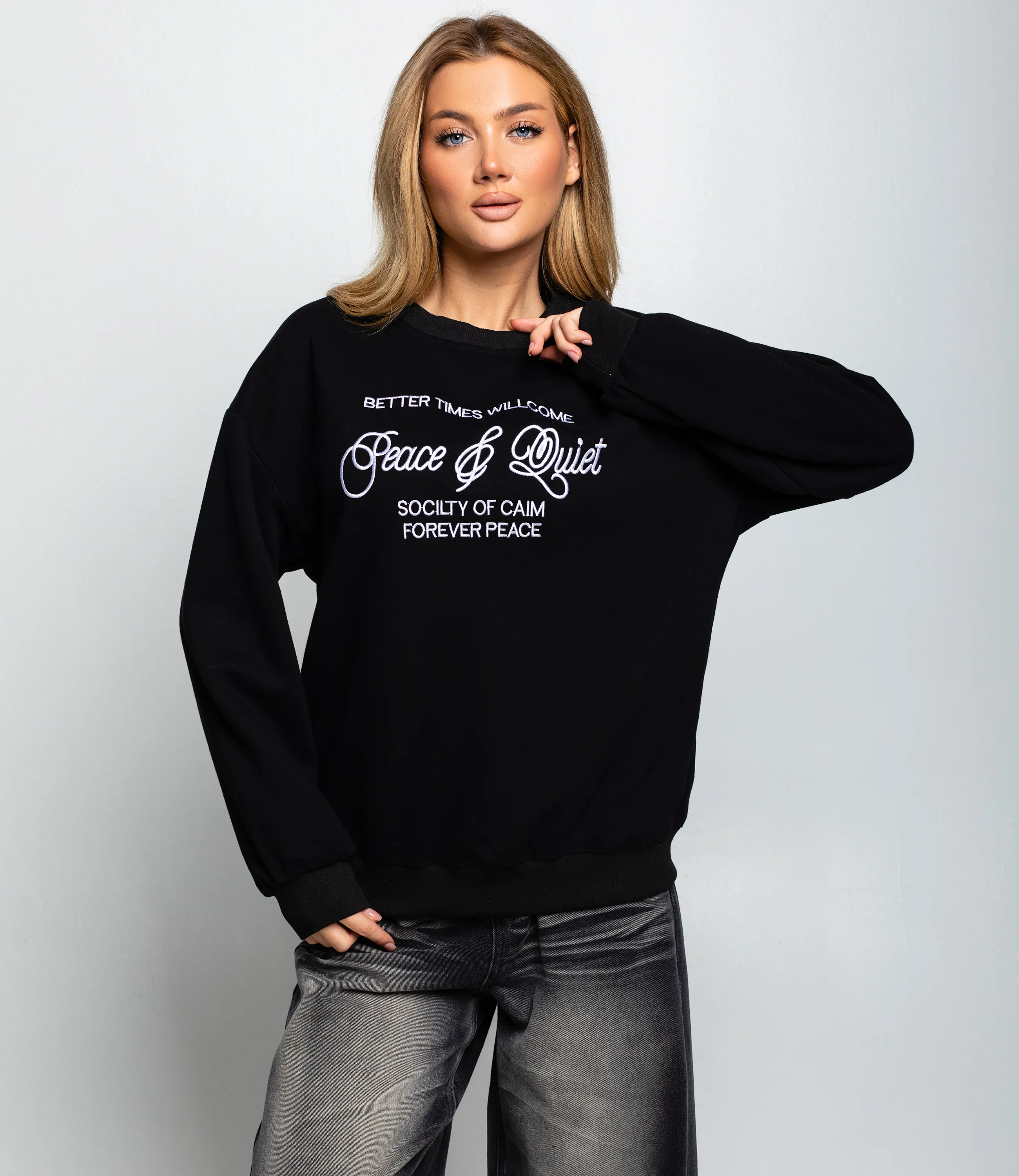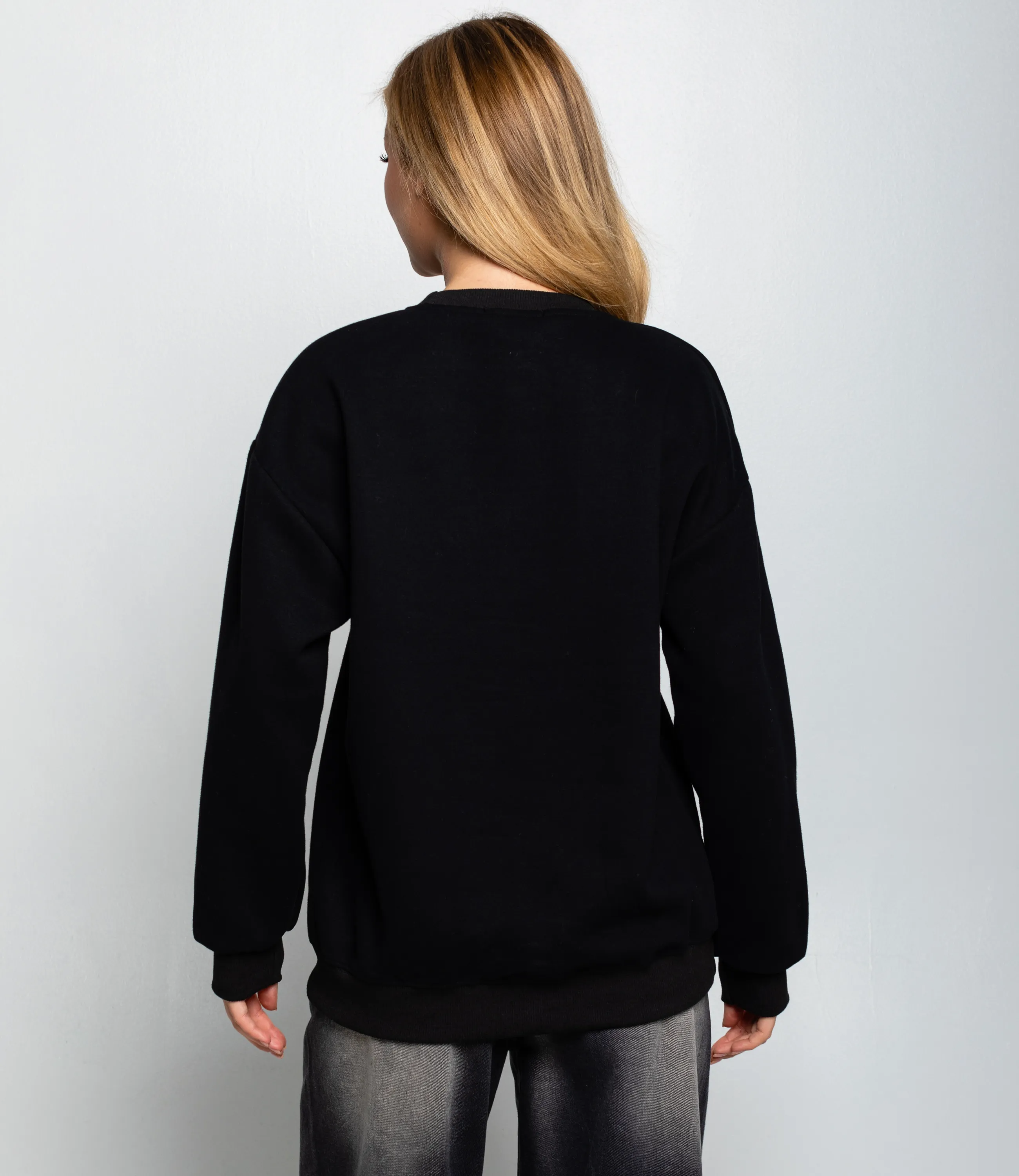 Свитшот — это часть гардероба, которая подчёркивает привлекательность и современную уверенность каждой покупательницы. Свитшот свободного, чуть удлинённого силуэта из плотного трикотажа. Рукава умеренно объёмные по всей длине и сужаются в эластичных манжетах на запястьях, создавая лёгкий драпирующийся эффект, низ изделия отделан широкой растяжимой планкой, удерживающей форму; спереди крупный печатный логотипно‑текстовый принт, выполненный ровным плотным напылением, без дополнительных декоративных вставок или аппликаций. Для пошива использована ткань 65% хлопок, 35% полиэстер. Хлопок обеспечивает приятные тактильные ощущения и хорошую воздухопроницаемость, полиэстер добавляет прочности, стойкости цвета и снижает усадку после стирок — в результате изделие дольше сохраняет форму и презентабельный вид при интенсивной эксплуатации. Такая композиция оптимальна для розничной продажи: повышенная износостойкость уменьшает процент рекламаций, а устойчивость цвета гарантирует соответствие образцов и фотографий. Цвета и фактура полностью соответствуют фотографиям в карточке товара, на странице размещена подробная таблица размеров для точного подбора. По запросу предоставляем образцы для оценки качества, гибкие минимальные партии.