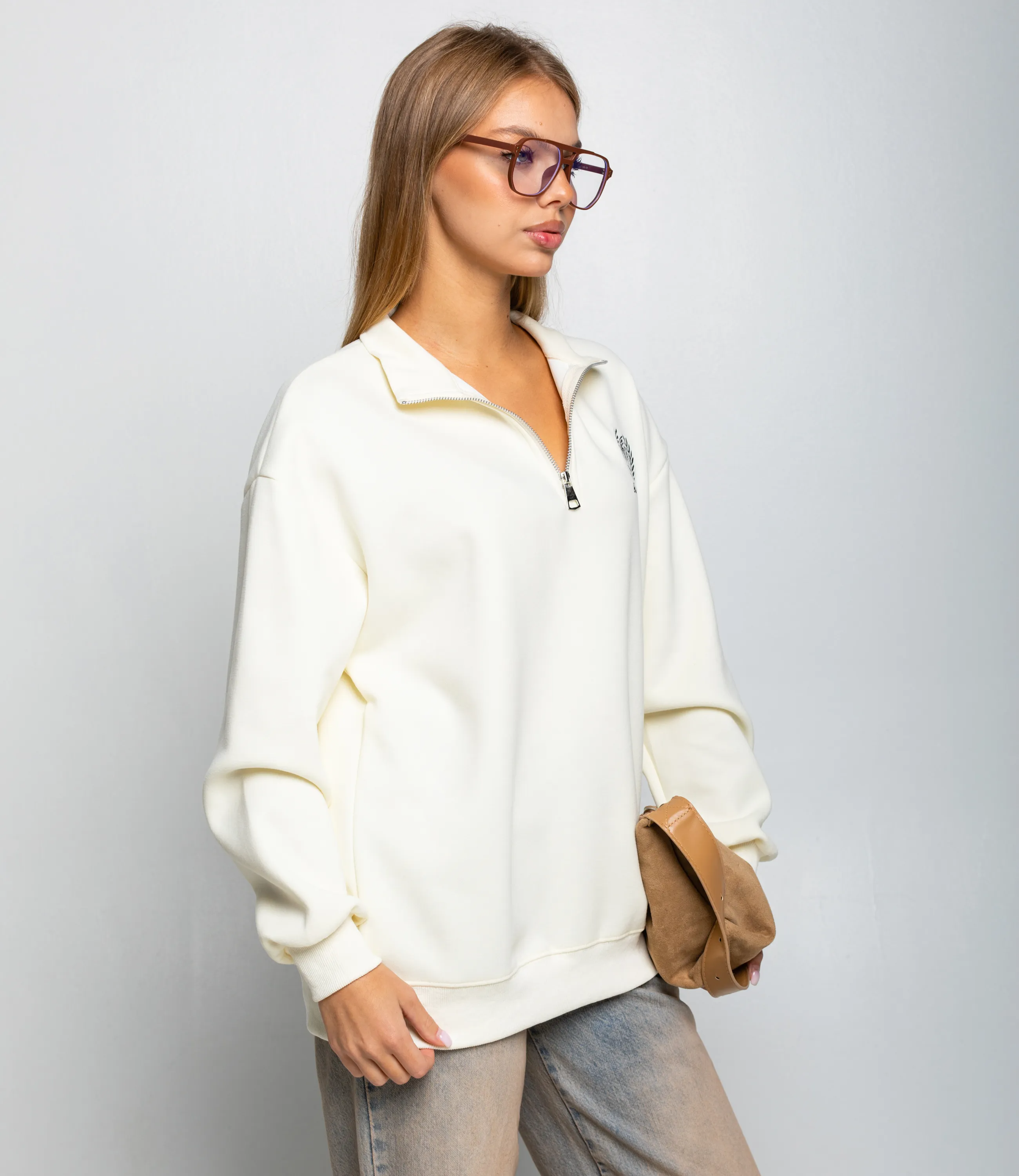 Свитшот — это часть гардероба, которая подчёркивает привлекательность и современную уверенность каждой покупательницы. Слегка свободного, чуть удлинённого кроя из плотного мягкого трикотажа; высокая стойка‑воротник с короткой центральной молнией, позволяющей регулировать посадку и образ, внутри воротника аккуратная отделка швов; плечи с опущенной линией, рукава просторные по верхней части и собираются в зауженные манжеты на запястьях, создавая лёгкий объём в области рукава. На груди крупный принт с графическим элементом, выполненный гладким печатным способом; швы вполотно и декоративные вставки отсутствуют, конструкция минималистичная, акцент сделан на фактуре ткани и принте. Для пошива использована ткань 65% хлопок, 35% полиэстер. Хлопок обеспечивает приятные тактильные ощущения и хорошую воздухопроницаемость, полиэстер добавляет прочности, стойкости цвета и снижает усадку после стирок — в результате изделие дольше сохраняет форму и презентабельный вид при интенсивной эксплуатации. Такая композиция оптимальна для розничной продажи: повышенная износостойкость уменьшает процент рекламаций, а устойчивость цвета гарантирует соответствие образцов и фотографий. Цвета и фактура полностью соответствуют фотографиям в карточке товара, на странице размещена подробная таблица размеров для точного подбора. По запросу предоставляем образцы для оценки качества, гибкие минимальные партии. Рост модели 168 см., 89-63-90.