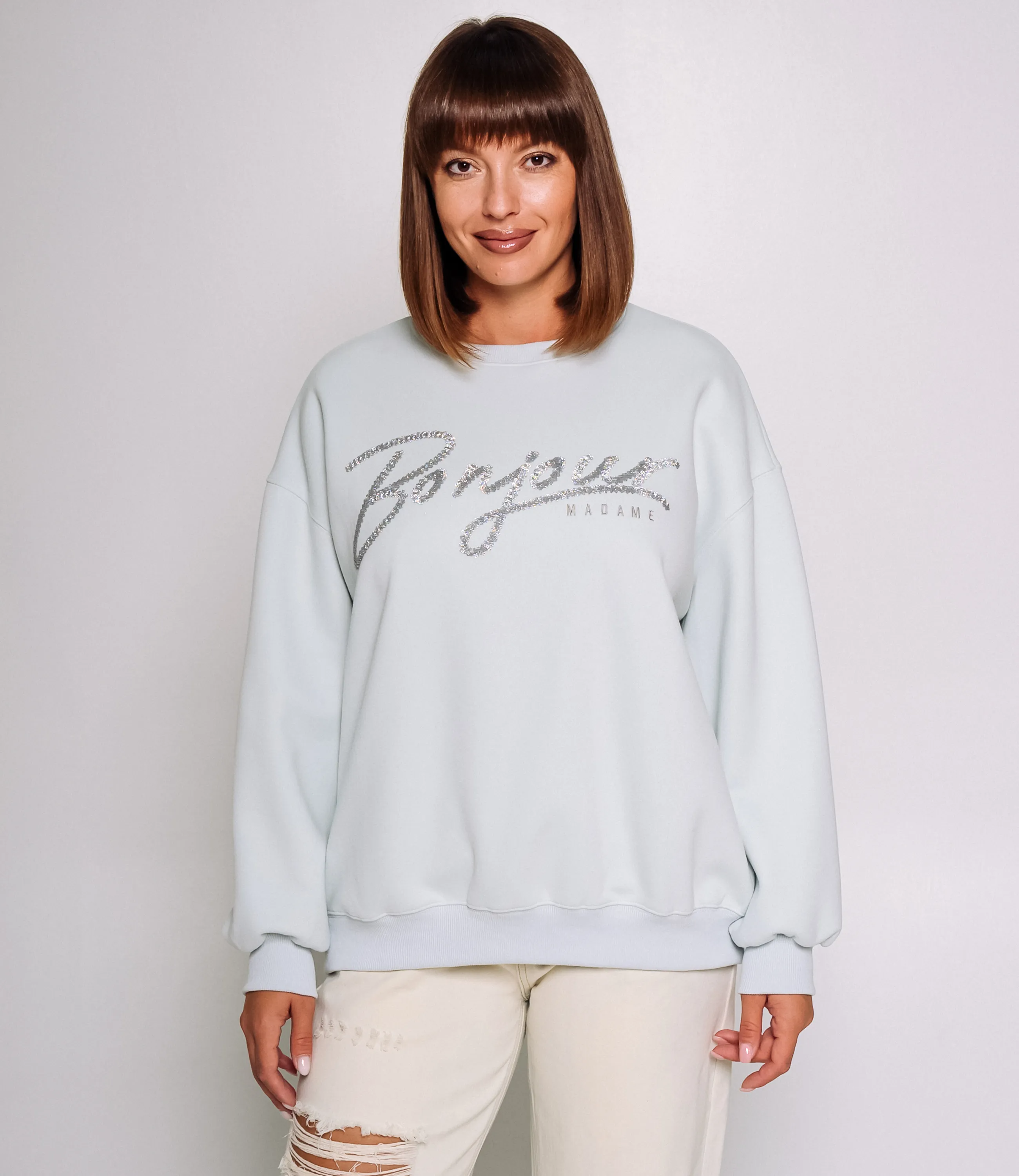Свитшот — это не просто одежда, а стильный элемент гардероба, который подчеркивает уникальность и индивидуальность каждой женщины. Эта модель, выполненная из высококачественного материала 100% хлопка, сочетает в себе комфорт, практичность и модные тенденции. Созданный в свободном стиле с округлым вырезом горловины, свитшот обеспечивает легкость и непринужденность в носке. Длинные рукава с эластичными манжетами и плотная трикотажная отделка по низу изделия обеспечивают идеальную посадку, что позволяет чувствовать себя комфорт в любой обстановке. Яркая надпись представлена в виде пайеток. Свитшот легко комбинируется как с джоггерами, так и с джинсами, позволяя вашим покупателям создавать стильные и разнообразные образы. На странице представлены размеры, что поможет вашим клиентам выбрать идеальный вариант. Мы уверены, что установленная цена является доступной, что делает этот свитшот отличным дополнением к вашему ассортименту. Не упустите возможность предложить своим покупателям модную и комфортную модель, которая отлично дополнит любой гардероб! Подарите им шанс оставаться стильными и чувствовать себя уверенно с этим привлекательным свитшотом, который подчеркнет их индивидуальность и модные предпочтения!
