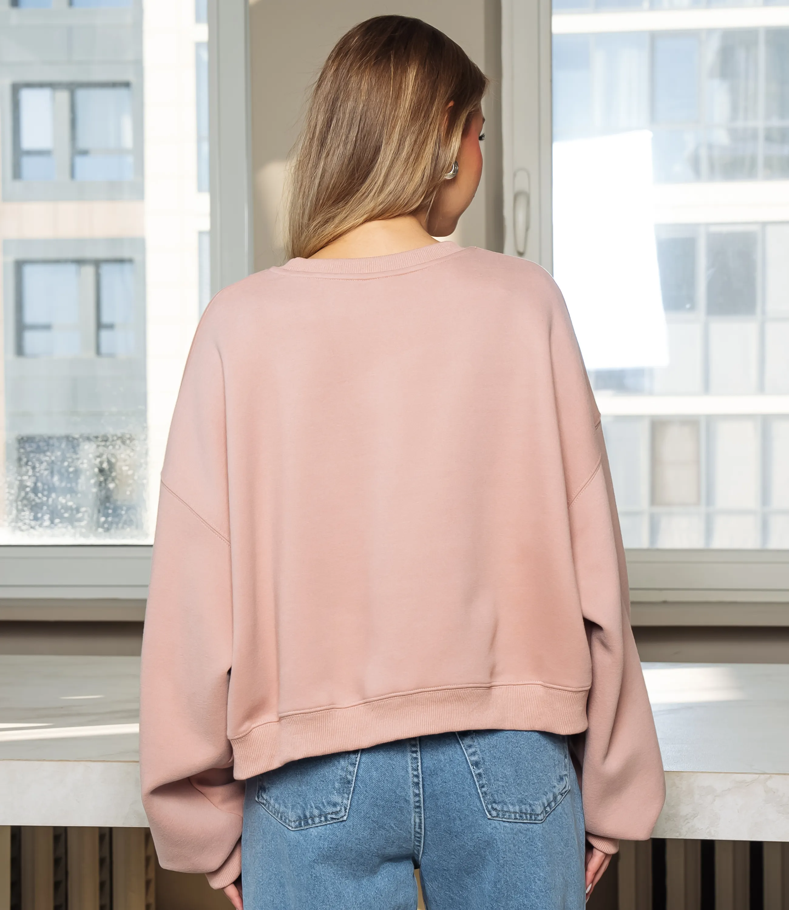 Свитшот — это часть гардероба, которая подчёркивает привлекательность и современную уверенность каждой покупательницы. Свитшот свободного силуэта с круглой горловиной и слегка заниженной линией плеч, выполнен из плотного трикотажного полотна с равномерной гладкой структурой; длинные рукава расширены к низу и оканчиваются плотными манжетами с эластичной вязкой, плечевые швы проклеены или усилены для сохранения формы; передняя часть украшена крупной аппликационной или вышитой надписью в виде букв, расположенных по дуге на уровне груди, буквы имеют объёмную текстуру и аккуратно обработанные края. Для пошива использована ткань 100% хлопок. Цвета и фактура полностью соответствуют фотографиям в карточке товара, на странице размещена подробная таблица размеров для точного подбора. По запросу предоставляем образцы для оценки качества, гибкие минимальные партии. Рост модели 168 см., 89-63-90. Вы можете заказать онлайн презентацию на интересующие Вас модели. Наши менеджеры свяжутся с Вами и проведут индивидуальную видеотрансляцию, помогут составить заказ и ответят на Ваши вопросы.