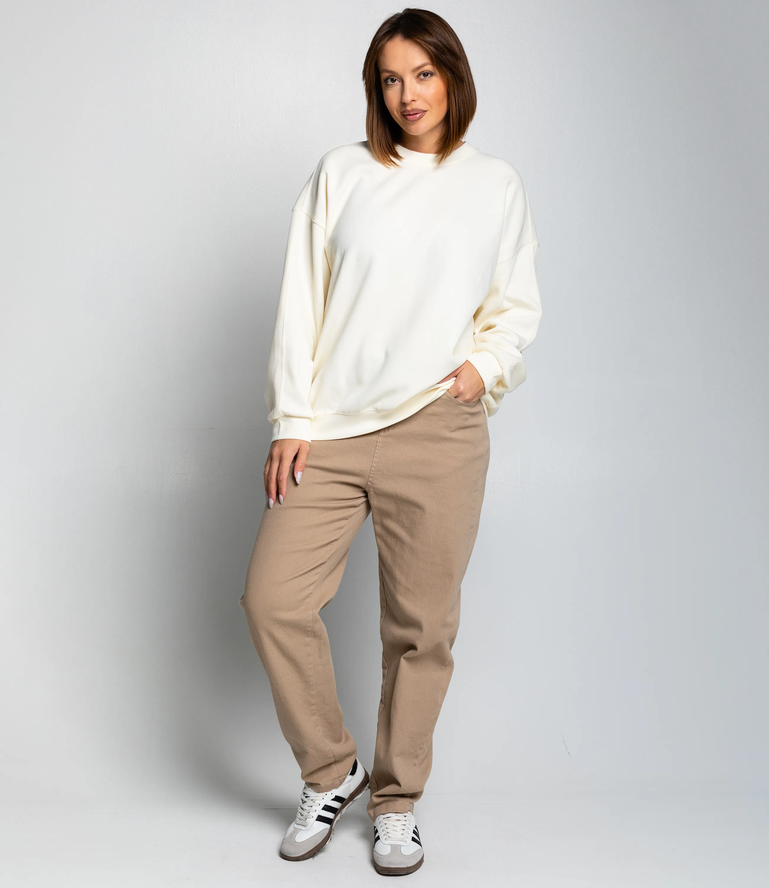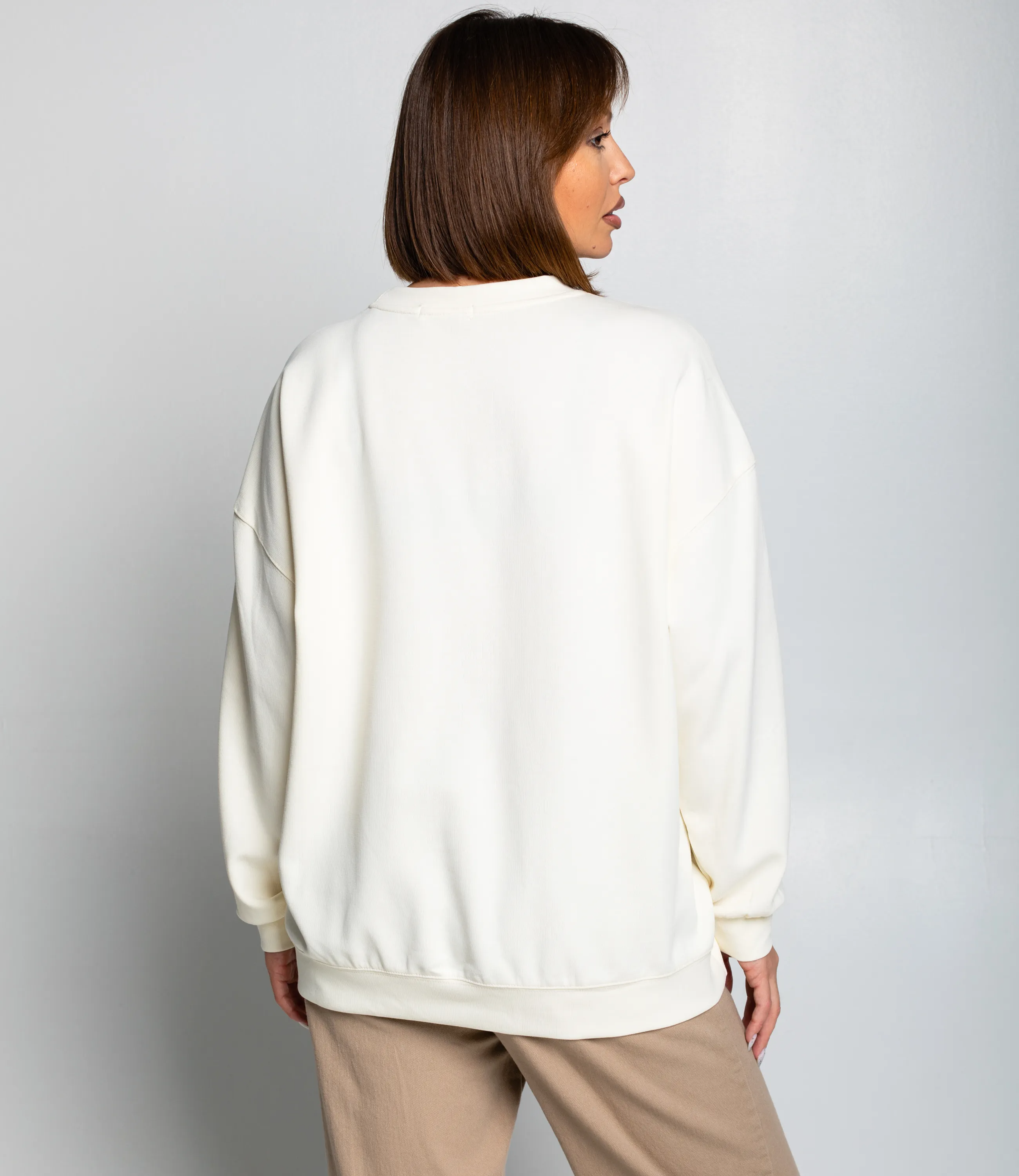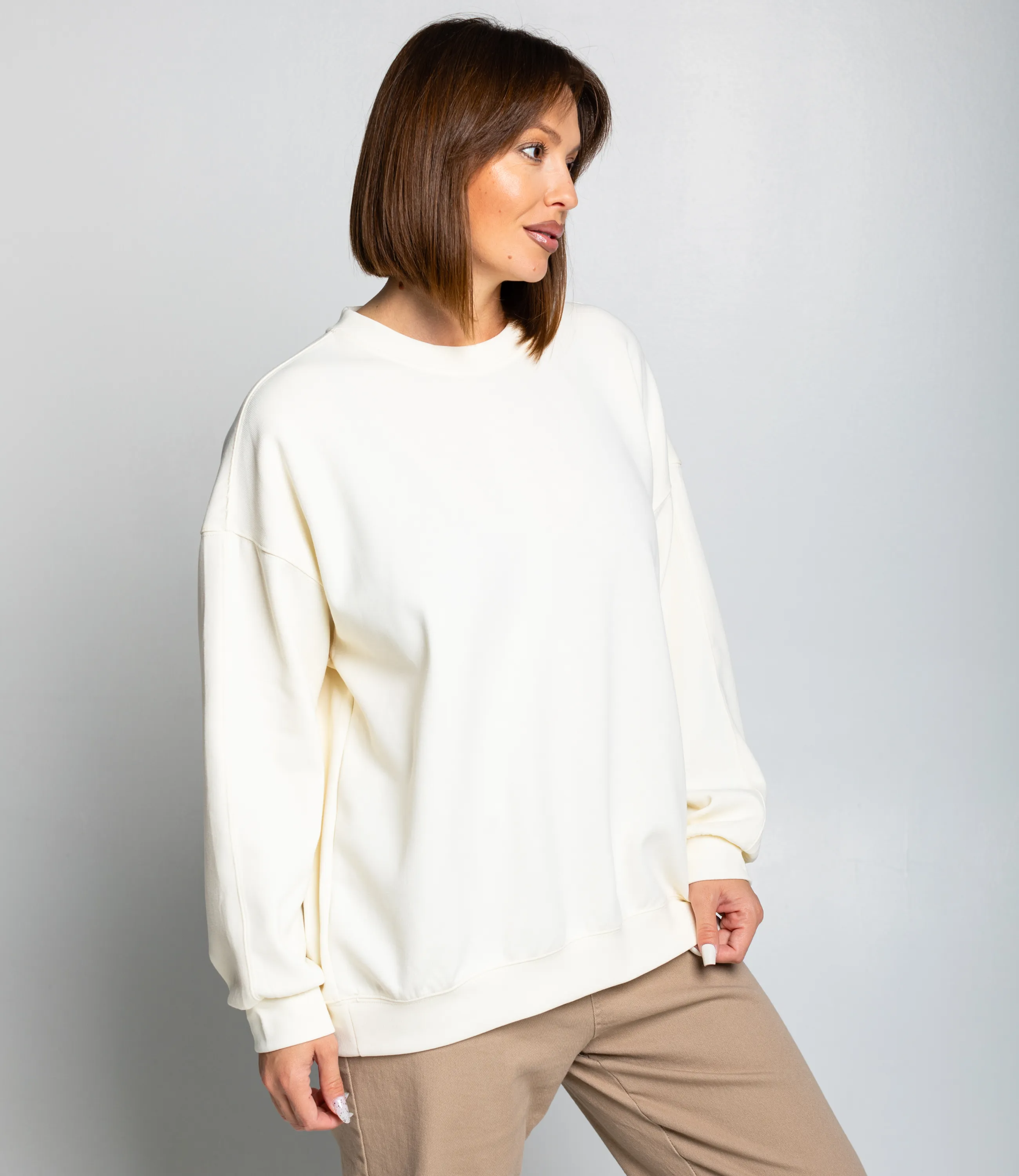 Свитшот — это часть гардероба, которая подчёркивает привлекательность и современную уверенность каждой покупательницы. Свитшот выполнен в свободном силуэте с чуть опущенной линией плеча, что создаёт расслабленный объём по корпусу и рукавам; длина примерно доходит до бедер, позволяя комбинировать модель и с заправкой, и носить навыпуск. Горловина круглая, обработана широкой планкой, обеспечивающей аккуратный край и долговечность формы. Рукава длинные, с мягкой сборкой возле манжет, которые имеют плотную резинку и плотно облегают запястья, препятствуя продуванию. Низ изделия также оформлен широкой резинкой, создающей лёгкую сборку и удерживающей свитшот на талии. Ткань средней плотности, с гладкой лицевой поверхностью и мягкой внутренней стороной, обеспечивающей тепло и комфорт при ношении. Для пошива использована ткань 80% хлопок, 20% полиэстер. Цвета и фактура полностью соответствуют фотографиям в карточке товара, на странице размещена подробная таблица размеров для точного подбора. По запросу предоставляем образцы для оценки качества, гибкие минимальные партии.