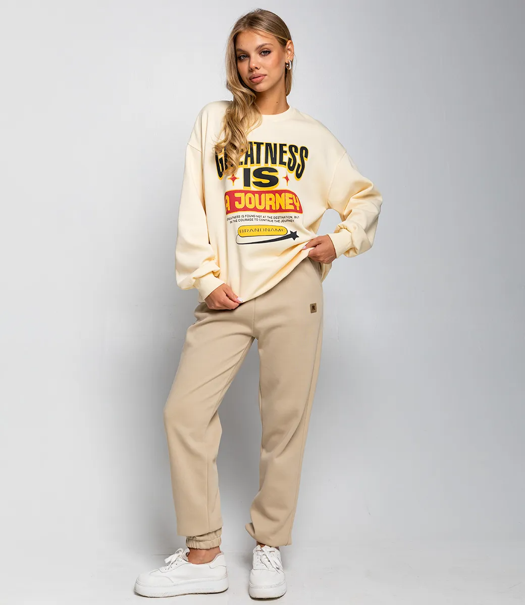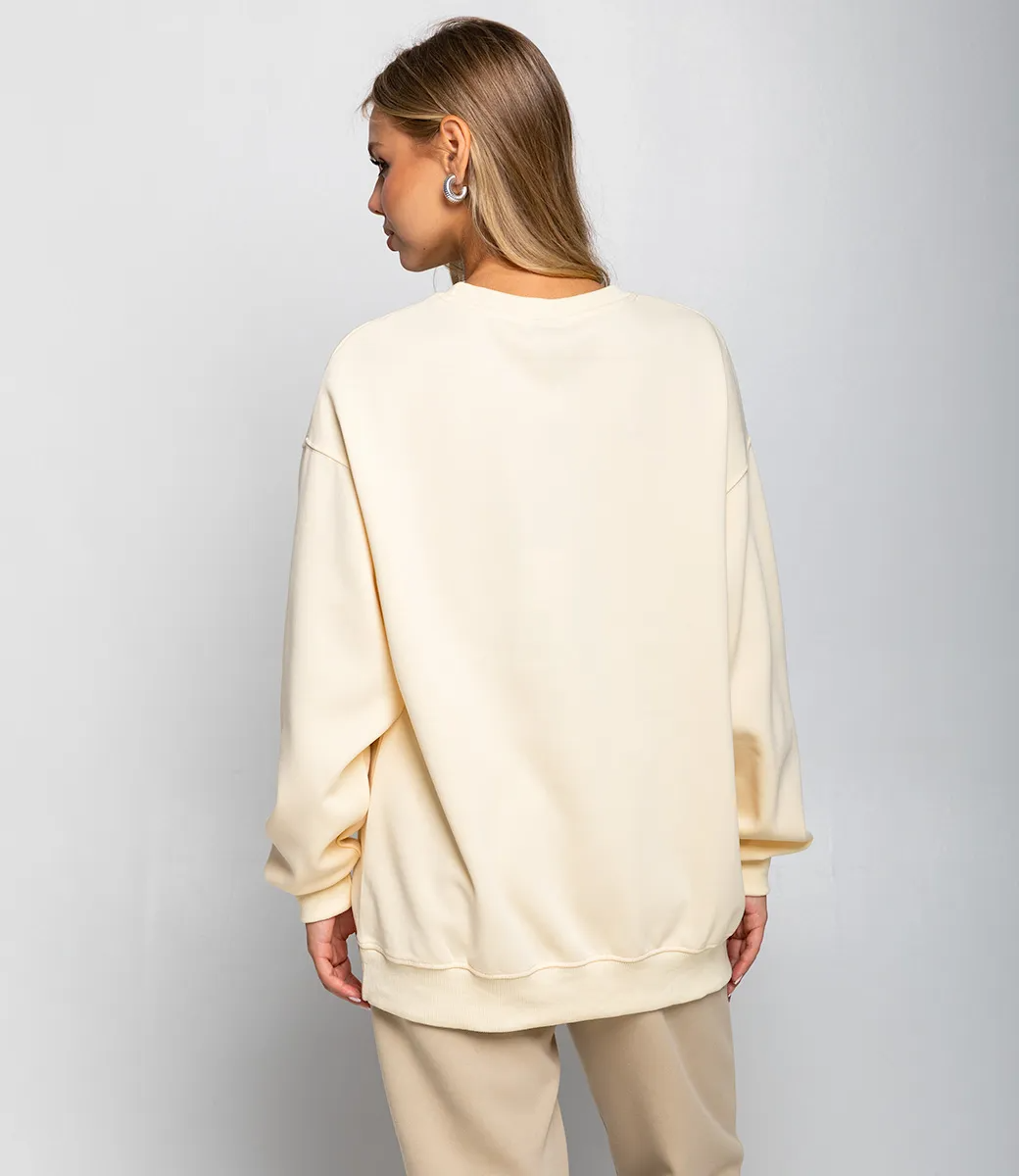 Свитшот — это обязательный элемент гардероба, который сочетает в себе комфорт и стиль, идеальный для активных и современных женщин. Эта модель выполнена в свободном, немного оверсайз стиле, что делает её идеальным выбором для создания непринужденных и модных образов. С долгими рукавами и трикотажными манжетами, свитшот обеспечивает отличную посадку и тепло, что делает его незаменимым в холодное время года. Круглая горловина с трикотажной резинкой добавляет нотку уюта и завершенности. На передней части свитшота располагается крупная яркая надпись с мотивирующим посылом, дополненная оригинальными графическими элементами. Это делает изделие не только стильным, но и придаёт ему особую энергетику, которая вдохновит на новые свершения. Изготовленный из 80% хлопка и 20% полиэстера, свитшот отличается плотным и приятным на ощупь материалом, который будет комфортен для повседневной носки, оставаясь при этом стильным. Такой свитшот идеально подходит для создания стильного и удобного образа, легко комбинируется с джинсами, спортивными брюками или юбками. Для уверенности в выборе размера мы предоставили на странице удобную таблицу размеров. Мы уверены, что предложенная цена является разумной и доступной, что делает этот свитшот блестящим выбором для оптовых покупателей. Подарите своим клиентам возможность быть стильными и уверенными в себе, выбрав наш уникальный свитшот! Рост модели 168 см., 89-63-90.