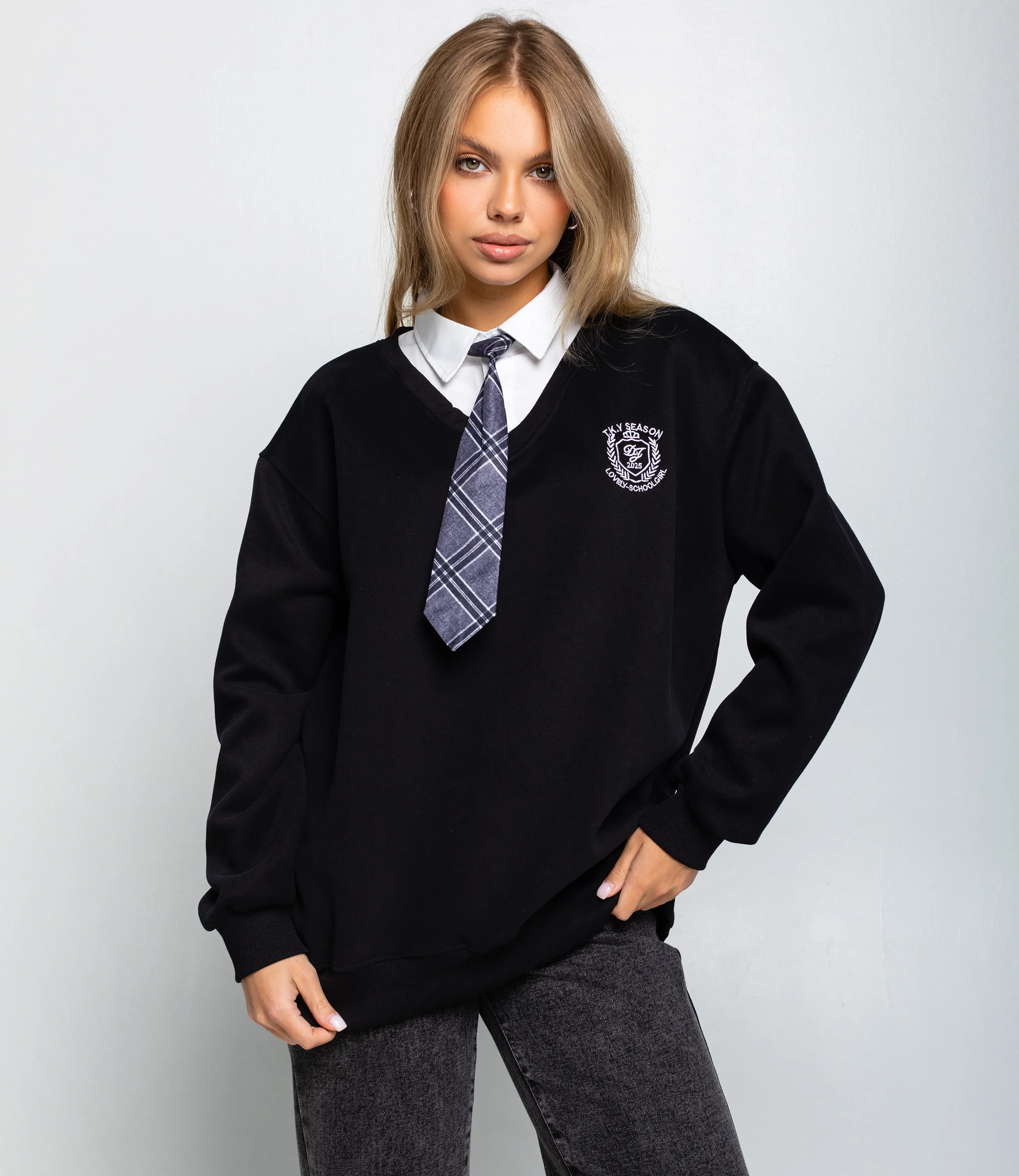 Свитшот — это часть гардероба, которая подчёркивает привлекательность и современную уверенность каждой покупательницы. Модель представлена в свободном стиле с классическим круглым вырезом горловины; вырез дополнен небольшим V‑образным декоративным элементом, область груди оформлена аккуратным логотипом или эмблемой, придающим изделию индивидуальность. Манжеты и низ свитшота выполнены с эластичными резинками, обеспечивающими хорошую посадку и защиту от продувания. Плотный и мягкий материал гарантирует комфорт и тепло, свитшот удобно носить в повседневных образах в сочетании с джинсами или спортивными брюками. Для пошива использована ткань 65% хлопок, 35% полиэстер. Хлопок обеспечивает приятные тактильные ощущения и хорошую воздухопроницаемость, полиэстер добавляет прочности, стойкости цвета и снижает усадку после стирок — в результате изделие дольше сохраняет форму и презентабельный вид при интенсивной эксплуатации. Такая композиция оптимальна для розничной продажи: повышенная износостойкость уменьшает процент рекламаций, а устойчивость цвета гарантирует соответствие образцов и фотографий. Цвета и фактура полностью соответствуют фотографиям в карточке товара, на странице размещена подробная таблица размеров для точного подбора. По запросу предоставляем образцы для оценки качества, гибкие минимальные партии. Рост модели 168 см., 89-63-90.