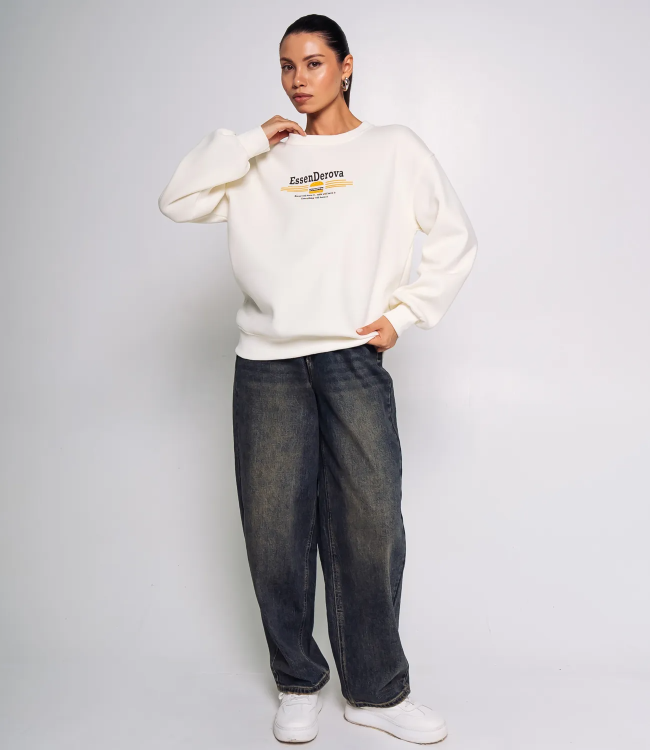 Свитшот — это не просто одежда, а стильный элемент гардероба, который подчеркивает уникальность и индивидуальность каждой женщины. Эта модель, выполненная из высококачественного материала (80% хлопка, 20% полиэстера), сочетает в себе комфорт, практичность и модные тенденции. Созданный в свободном стиле с округлым вырезом горловины, свитшот обеспечивает легкость и непринужденность в носке. Длинные рукава с эластичными манжетами и плотная трикотажная отделка по низу изделия обеспечивают идеальную посадку, что позволяет чувствовать себя комфортно в любой обстановке. Яркая цветной принт спередии добавляет модели динамичности и молодежного духа, создавая современный образ, идеально подходящий для повседневной носки. Свитшот легко комбинируется как с джоггерами, так и с джинсами, позволяя вашим покупателям создавать стильные и разнообразные образы. На странице представлены размеры, что поможет вашим клиентам выбрать идеальный вариант. Мы уверены, что установленная цена является доступной, что делает этот свитшот отличным дополнением к вашему ассортименту. Не упустите возможность предложить своим покупателям модную и комфортную модель, которая отлично дополнит любой гардероб! Подарите им шанс оставаться стильными и чувствовать себя уверенно с этим привлекательным свитшотом, который подчеркнет их индивидуальность и модные предпочтения! Рост модели 164 см., 83-61-89.