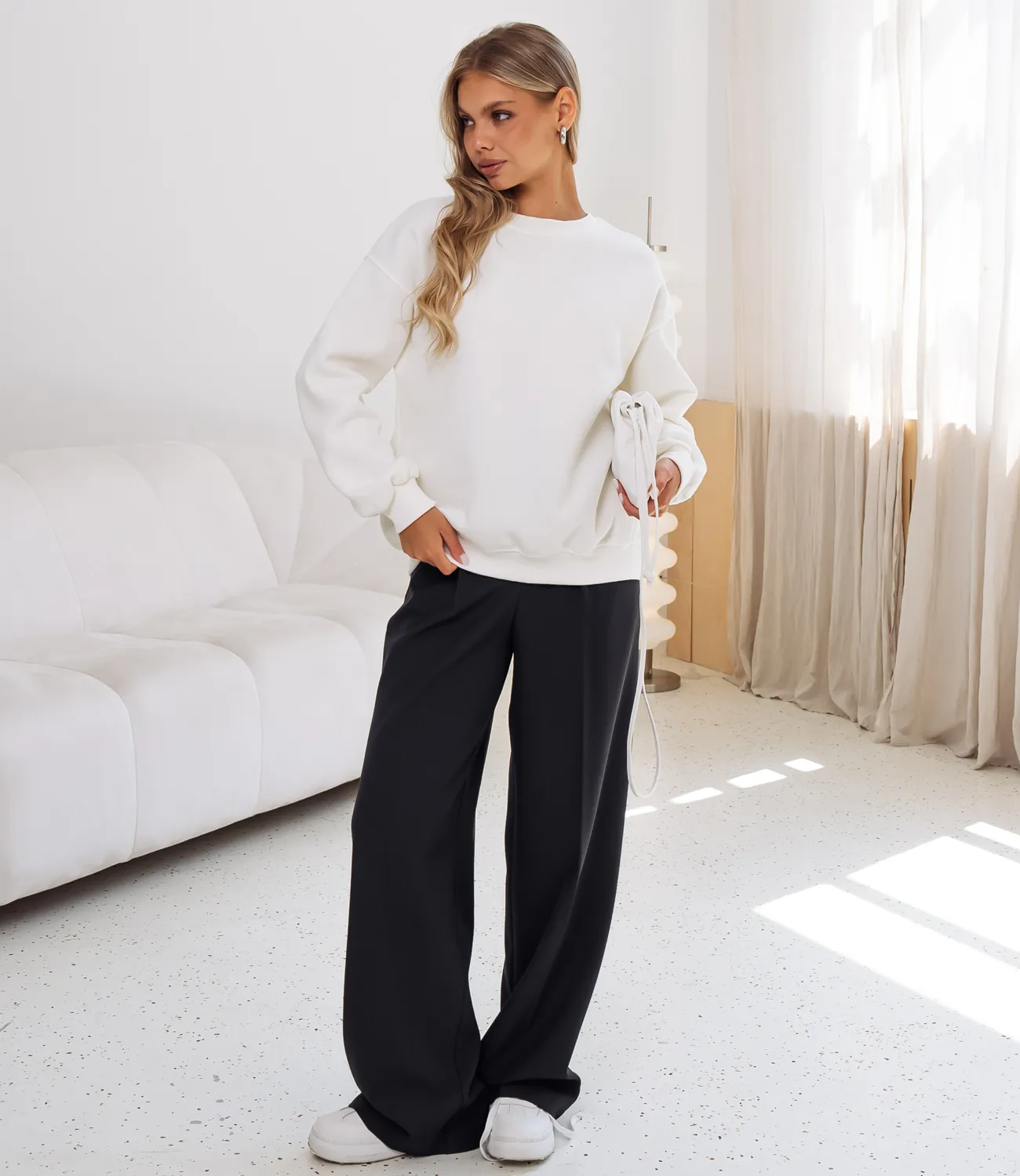 Два главных признака хорошей вещи: привлекательный внешний вид и комфорт. Этот стильный свитшот соответствует всем критериям. Модель имеет свободный крой, длинные рукава со спущенными плечами. Рукава и низ кофты оснащены манжетами с эластичной резинкой.Рост модели 168 см., 89-63-90.