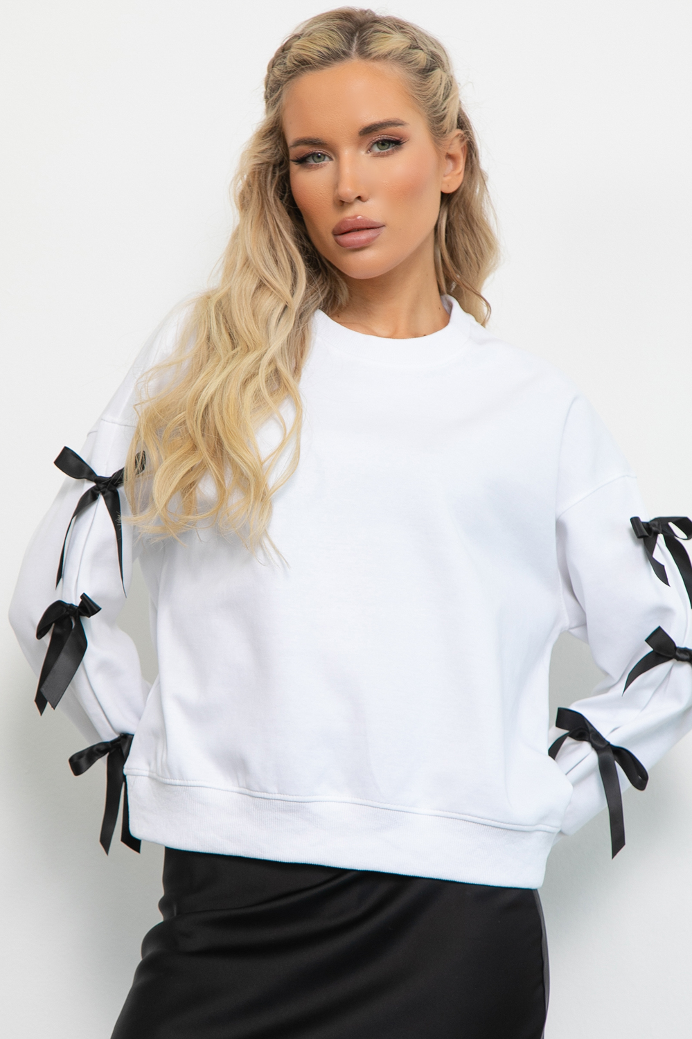 Свитшот “Не жди завтра” идеальный  выбор для стильных девушек! Этот праздничный свитшот подходит как для прогулок, так и для особых случаев благодаря своему нарядному виду.  Он сочетает в себе базовую функциональность и яркий дизайн. Бантики на рукавах – тренд 2025.