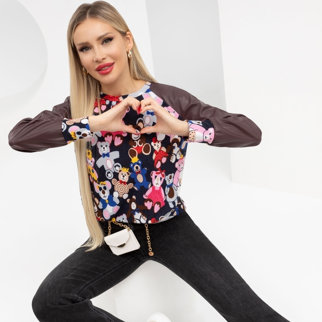 Teddy bear! Микс фактур, оригинальный принт. Для поклонниц современного искусства из нью-йоркской галереи. Тебя точно заметят. И захотят пообщаться. Твое дело решать - где, когда, кому и сколько уделить внимания.