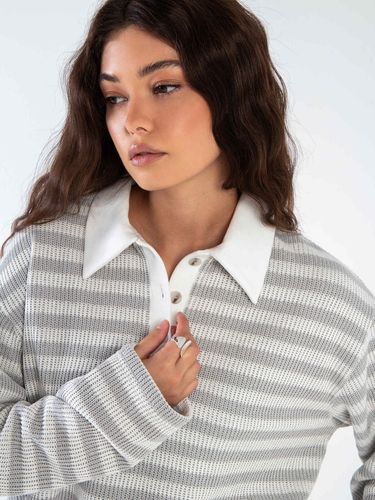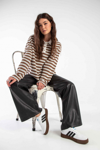 Поло свободного прямого силуэта, с прямым низом. Минималистичная планка с фурнитурой в цвет пряжи молочного цвета. Универсальная модель актуального цвета прекрасно сочетается как с другими изделиями новой капсулы, так и с базовыми джинсами, юбками и брюками.