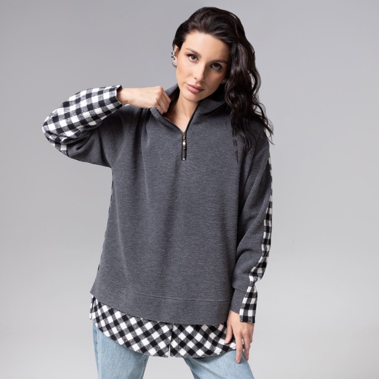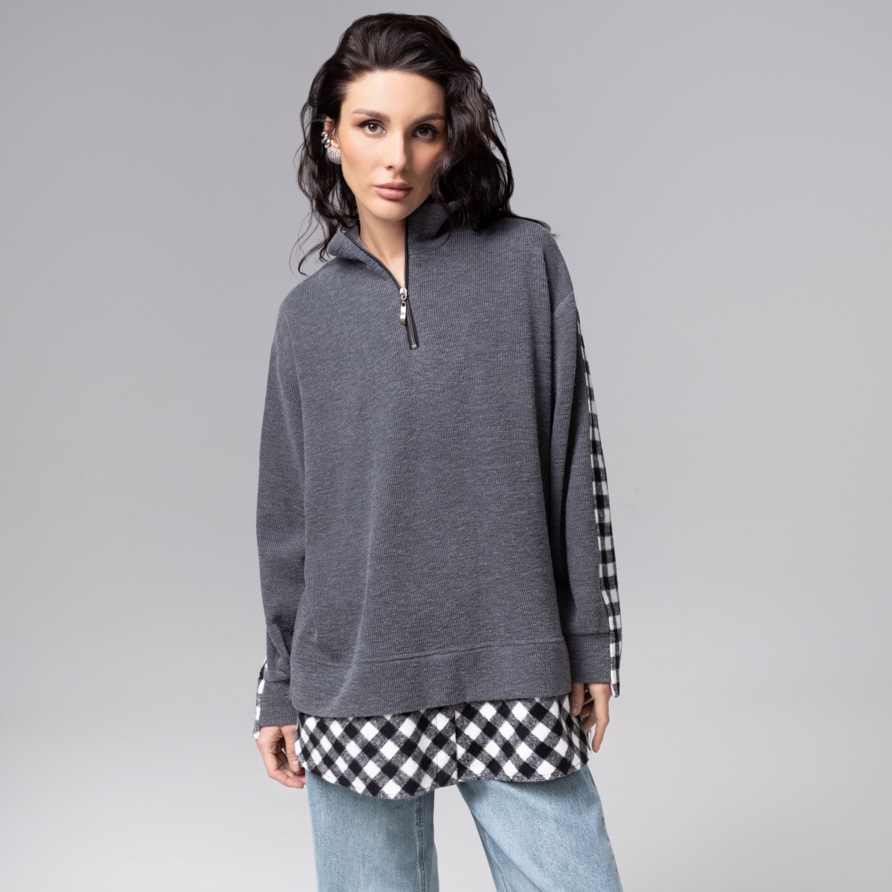 Название говорит само за себя: «Путешествие начинается». Этот свитшот создан для движения вперёд. Словно утренний город после дождя – он переливается нюансами и фактурами. Он рассказывает историю о движении, начале пути и смелой мечте. Свитшот с имитацией многослойности. Продуманный крой изделия и мякгий трикотаж обеспечивают идеальную посадку на любом типе фигуры. Свитшот удлиненный.