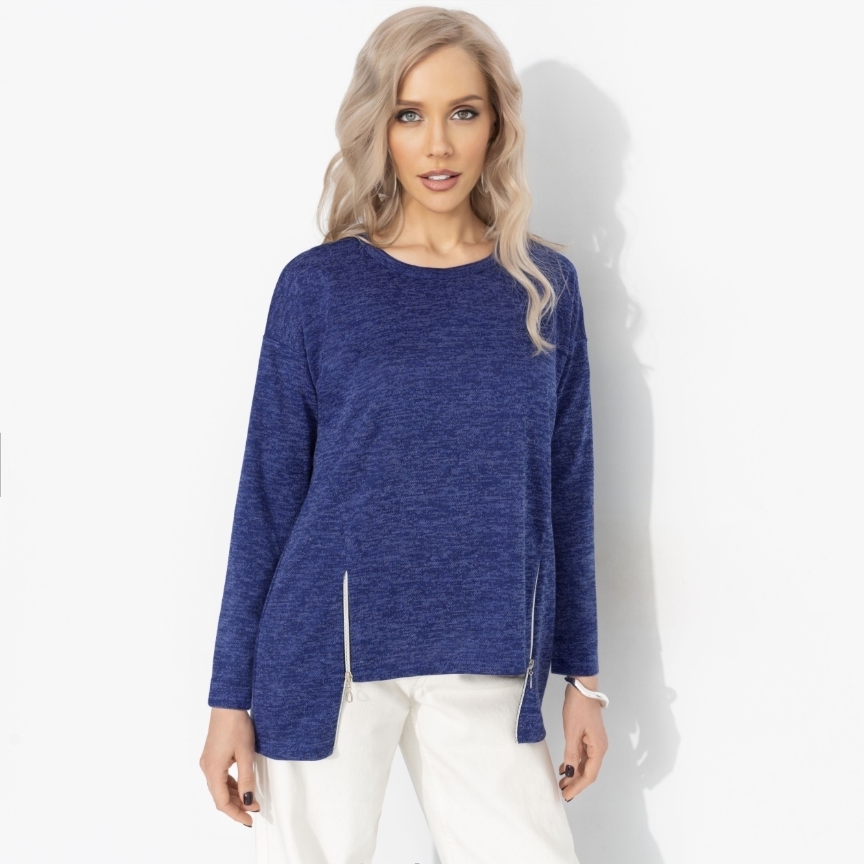 Тебя легко представить в уличных модных хрониках: такие расслабленные джемперы стильные селебрити носят с джинсами, тренчем и солнцезащитными очками. Вы идете по городу, как знаменитость инкогнито: расслабленный силуэт, правильный синий оттенок, мягкий трикотаж. Ох уж эти папарацци, никаакого покоя от них! Свитшот свободного кроя со спущенным плечом подходит разным типам фигур. Длина закрывает бедра, что удобно для сочетаний с узкими джинсами и леггинсами.