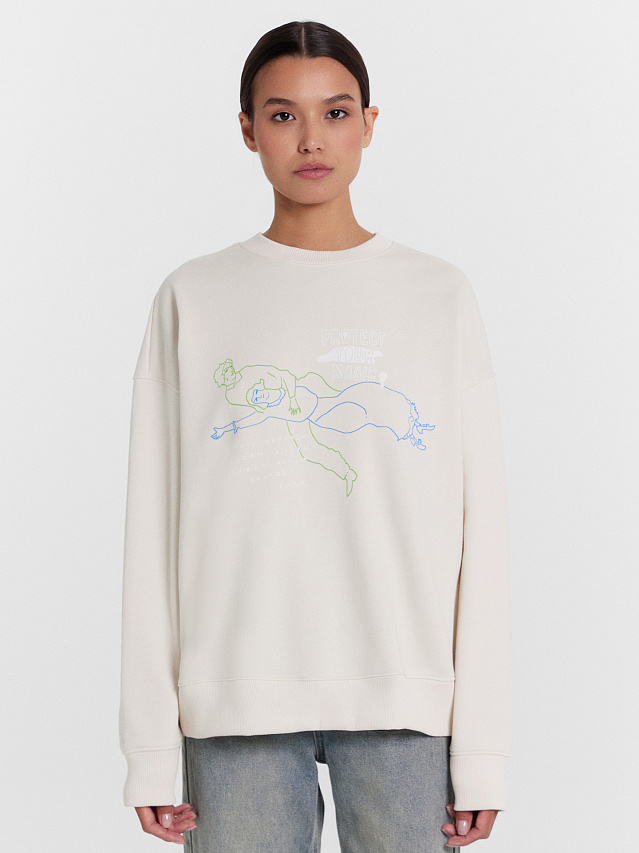 Свитшот женский свободного силуэта из базовой коллекции с оригинальным принтом в виде надписи "Protect your magic / Защити свою магию" - это идеальный вариант для тех, кто хочет выглядеть модно в любой ситуации. Изготовленный из мягкого и комфортного материала - футера с подчесом, этот женский джемпер (свитшот) подарит комфорт и тепло в прохладное время года. Горловина круглой формы. Рукава длинные, с манжетами из рибаны, как и пояс модели. Изделие обладает отличной теплоизоляцией, что делает его лучшим выбором для прогулок на свежем воздухе. Рекомендуем для создания лаконичных городских образов!