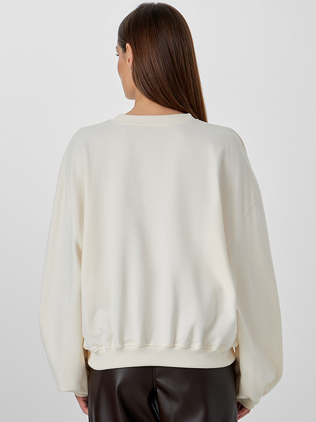 Спущенная линия плеч и длинные рукава на эластичных манжетах обеспечивают полную свободу движений. Этот свитшот подойдет для прогулок, встреч с друзьями или отдыха — он не сковывает и сохраняет форму даже после множества стирок. Универсальный бежевый цвет легко комбинируется с любыми оттенками в вашем гардеробе, делая его базовой вещью на каждый день.