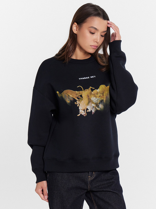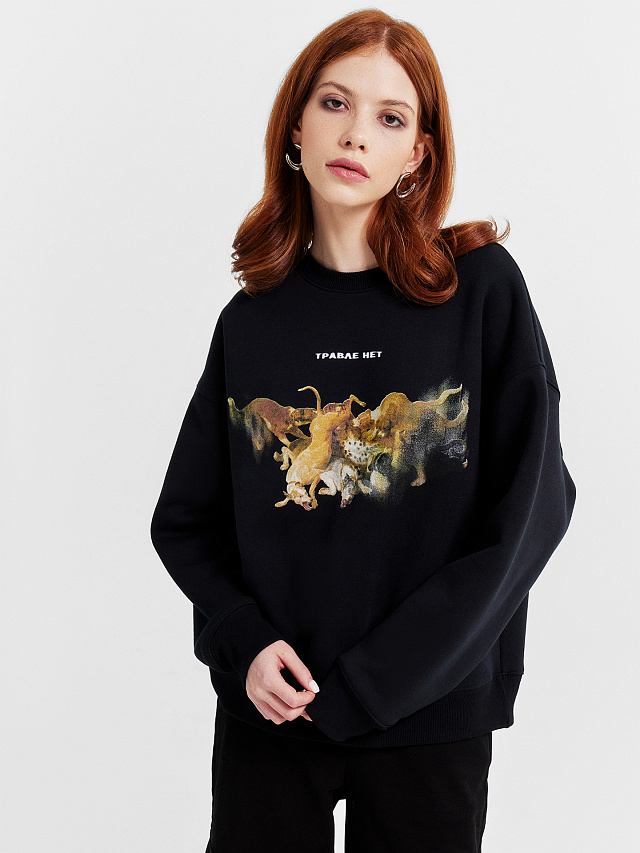 Свитшот женский черный с принтом из коллекции "#травленет"