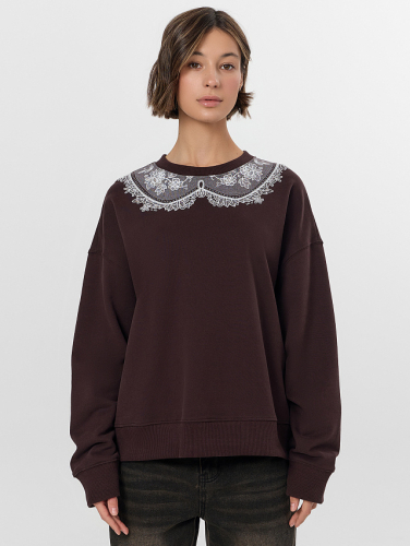 Свитшот женский — это уютная и стильная модель, которая сочетает в себе комфорт и современный дизайн. Свободный oversize-силуэт с длиной до линии бедер мягко облегает фигуру, не сковывая движений. Реалистичное изображение кружевного воротника, нанесенное методом печати, создает эффектный акцент, визуально напоминая нежную отделку, но при этом сохраняя все преимущества простого в уходе свитшота.