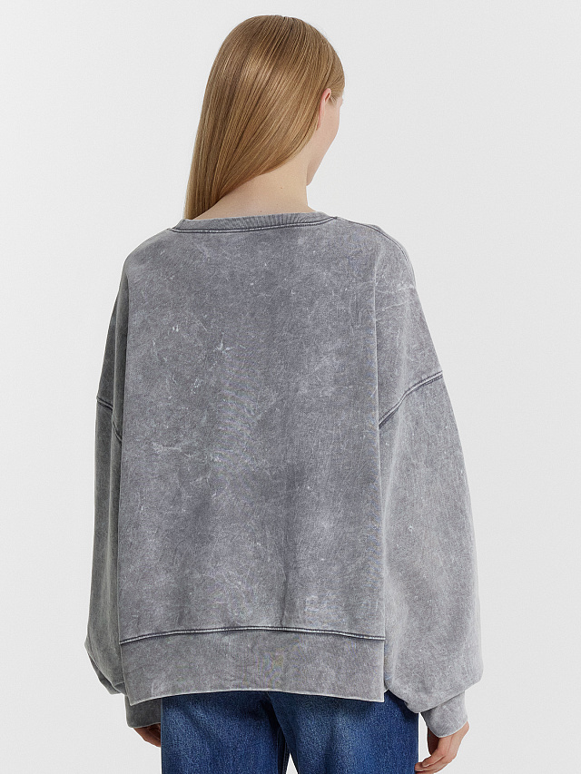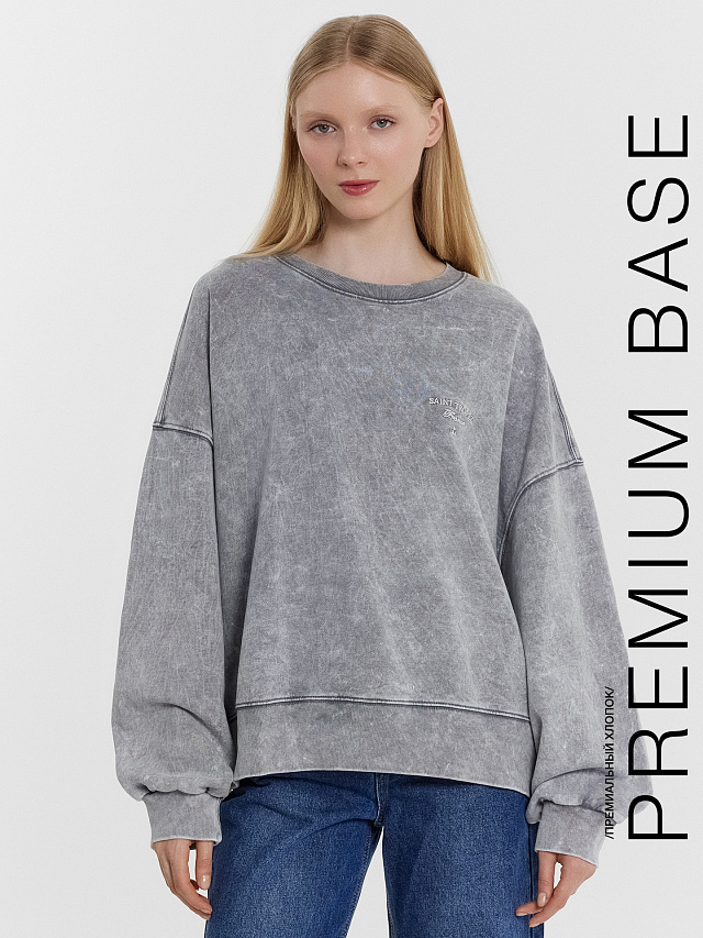 Свитшот женский оверсайз синий с обработкой эйсид и вышивкой "Saint Tropez"