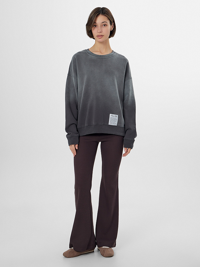 Серый женский оверсайз свитшот с эффектом вытравки на графите — стильная модель для повседневной носки. Техника вытравки создает на поверхности ткани мягкие размытые переходы оттенков, напоминающие графитовый рисунок, что придает свитшоту современный динамичный образ.