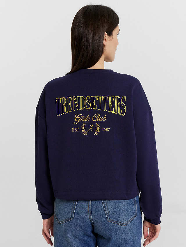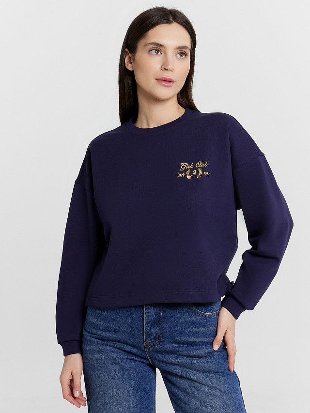 Свитшот женский синий с вышивкой на груди "girl club"