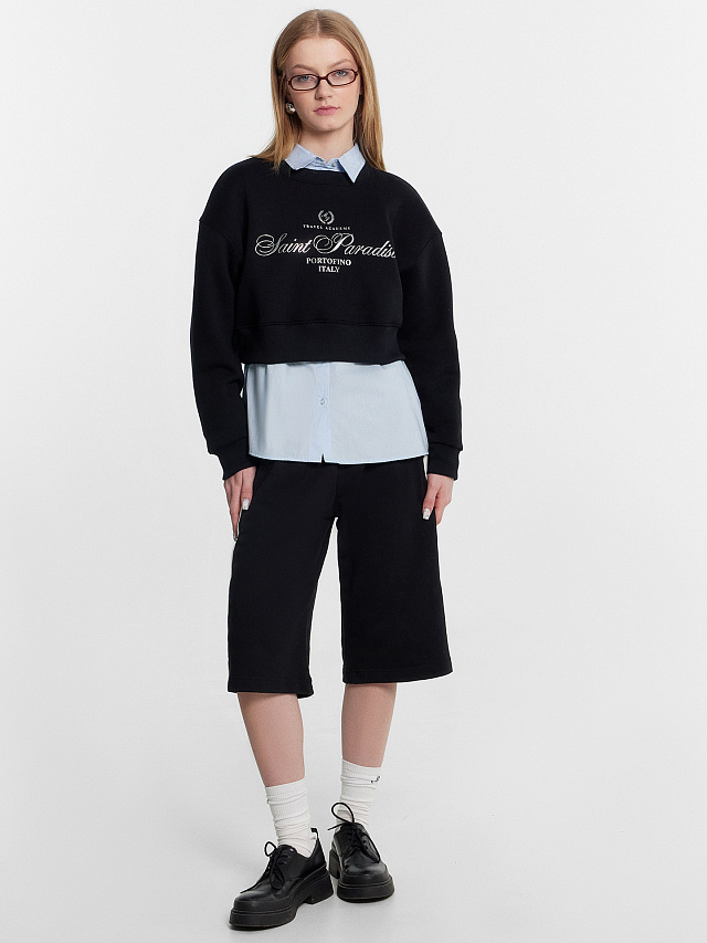 Укороченный свитшот для стильных образов! Модель, выполненная из трикотажного футера трехнитки без подчеса, станет незаменимым элементом вашего гардероба. Свободный крой обеспечивает комфорт и современный вид. Горловина, обработанная обтачкой из рибаны, добавляет аккуратности, а длинные рукава с эластичными манжетами и пояс из рибаны по низу изделия создают гармоничный образ. Такой свитшот станет отличным дополнением к вашему стилю, позволяя легко создавать актуальные и удобные комплекты для любого случая. Рекомендуем!