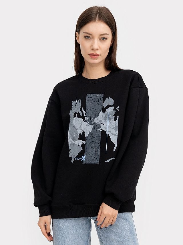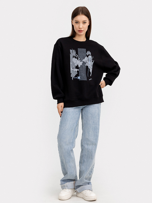 Свитшот женский в черном цвете с печатью