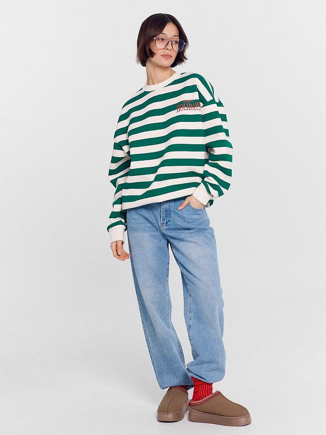 Свитшот женский в молочно-зеленую полоску