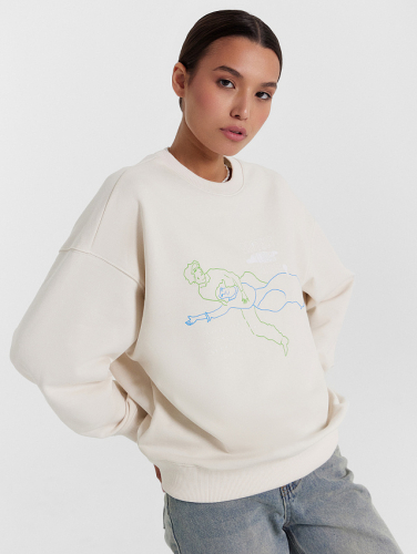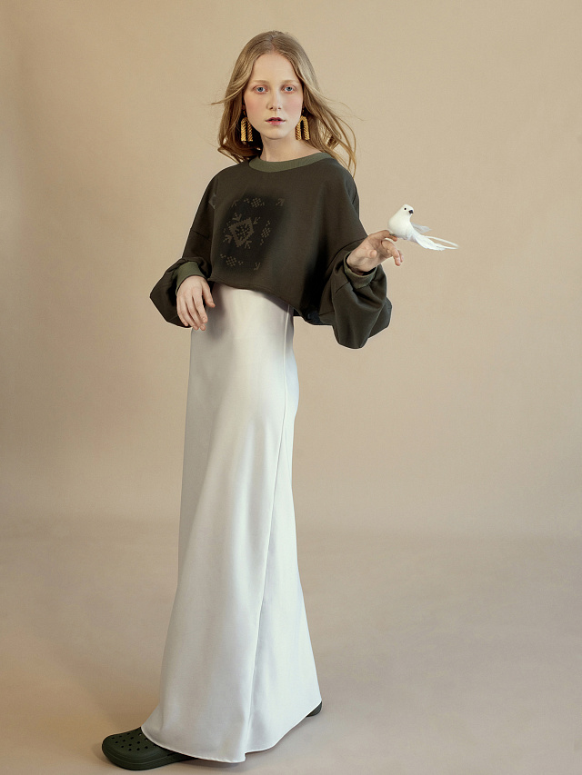 Свитшот женский в серо-зеленом цвете с орнаментом