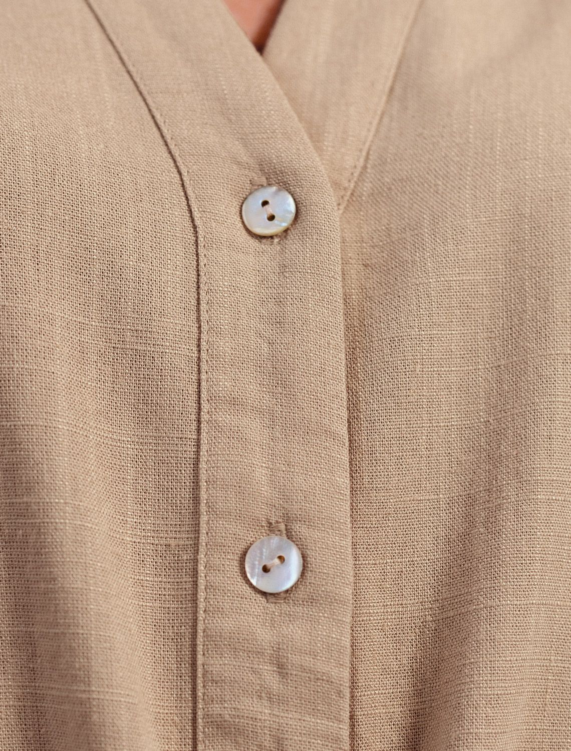 Свободная блузка бежевого цвета с кулиской на талии изо льна с вискозой, плотностью 200 Г/м2 - идеальный вариант для весны и лета. Сочетание льна и вискозы обеспечивает комфорт и прохладу в жаркие дни. Материал хорошо драпируется и мягко прилегает к фигуре, создавая струящиеся складки. Эта эффектная блузка сочетает в себе современный крой, удобство и стиль. Отложной воротник придает образу элегантность, спущенная линия плеча — модный и расслабленный акцент, а широкий рукав создает красивый и воздушный силуэт. Талия оформлена утягивающей кулиской, что позволяет регулировать посадку — создайте акцент на поясе для женственного силуэта или носите свободно для комфорта, отлично скроет возможные недостатки. Пуговицы по всей длине делают льняную рубашку особенно практичной, вы можете носить ее растегнутой, как верхний слой. Эта легкая блузка подходит для повседневного гардероба, смотрится красиво и стильно, обеспечивая максимальное удобство, подойдет и на большие размеры.