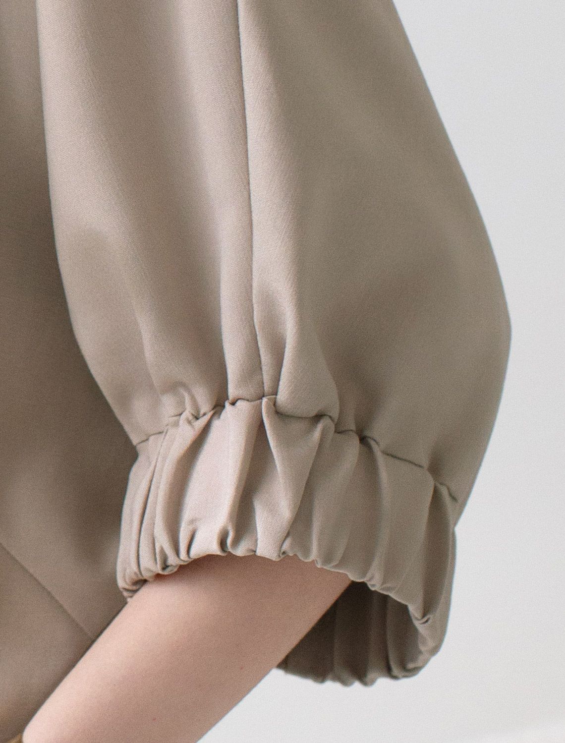 Свободная блузка светло-бежевого цвета выполнена из плотного лиоцелла. Лиоцелл это более дорогой и экологичный вариант вискозы, очень прочный и шелковистый. Современная интерпретация кроя «летучая мышь» дополнена акцентными эластичными манжетами. Эта блузка идеальна для любого типа фигуры, в том числе и на королевские размеры. Этот крой создан для того, чтобы мягко скрыть лишние объемы. Эта повседневная блузка с вырезом лодочка создана для легкого и утонченного стиля. Мягкие линии кроя создают невероятно эффектный образ, который подчеркивает естественную красоту, не стесняя движений, а свободный фасон дарит ощущение абсолютного комфорта и уверенности. Блузка красиво драпируется при движении, создавая летящий, воздушный эффект.