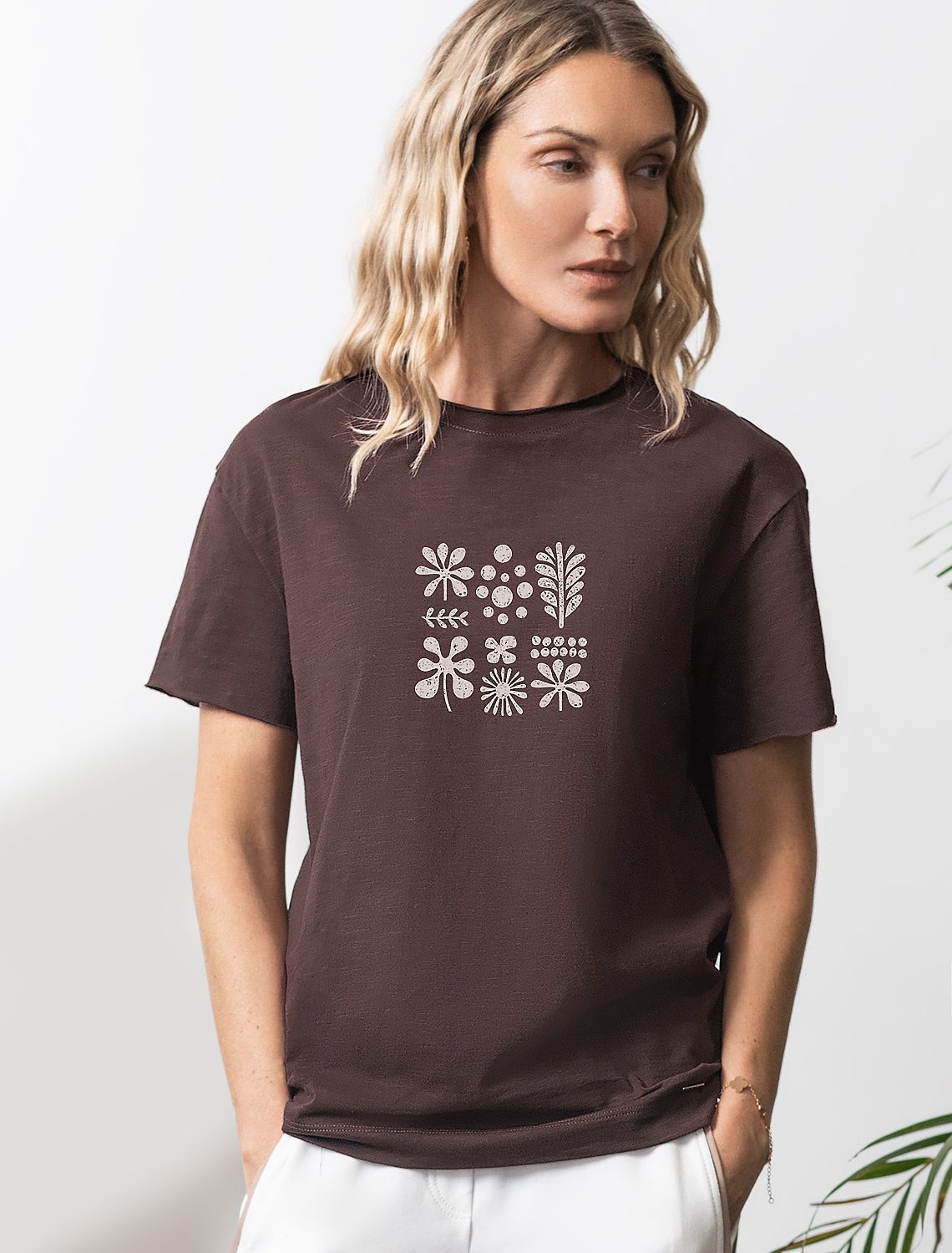 Свободная футболка шоколадного цвета выполнена из фактурного трикотажа плотностью 140 Г/м2. Текстура материала создает интересный эффект с характерными горизонтальными "штрихами", создаваемыми использованием нитей разной плотности, что делает повседненую футболку особенно стильной, при этом она идеальна для жаркой летней погоды и позволяет чувствовать легкость и удобство. Футболка прямого кроя отлично садится на любую фигуру, обеспечивая свободу движений. Дышащая ткань из натурального 100% хлопка пропускает воздух и не вызывает дискомфорта при длительном ношении. Модная футболка с принтом добавляет яркости образу, сохраняя баланс между минимализмом и выразительностью. Принт нанесен красками с устойчивым покрытием. Базовая футболка хорошо держит форму и гарантирует долговечность даже при частой носке. Подходит для больших размеров до 56 включительно, свободная посадка позволяет чувствовать себя уверенно в любой ситуации. Это выбор для тех, кто ценит удобство без ущерба стилю. Мягкость материала делает футболку подходящей даже для беременных женщин или обладательниц чувствительной кожи. Актуальные цвета подчеркивают современность футболки, делая ее отличным вариантом как для повседневной носки, так и более праздничных случаев. Круглый вырез горловины дополняет общий минималистичный дизайн футболки, создавая аккуратный силуэт. Такой фасон уместен для работы в офисе, для городского стиля, дома, в неформальной обстановке или даже на деловых встречах.