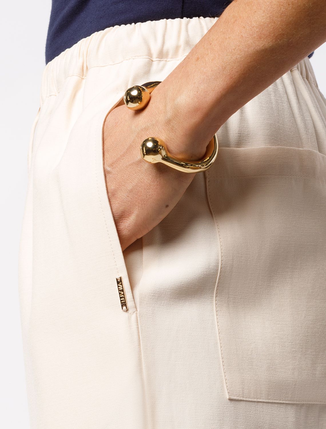 Брюки свободного кроя выполнены из плотного лиоцелла. Модель дополнена карманами и поясом с эластичной резинкой и регулируемым шнурком с золотистой фурнитурой. Ткань изделия отлично держит форму, плавно драпируется и не просвечивает. В теплое время года приятно охлаждает кожу. Добавление синтетических волокон в составе изделия, предотвращает сминаемостьи поддерживает формоустойчивость. Брюки сочетаются в костюме с топом D23.063, блузкой D29.266, D29.267 и жилетом D27.002