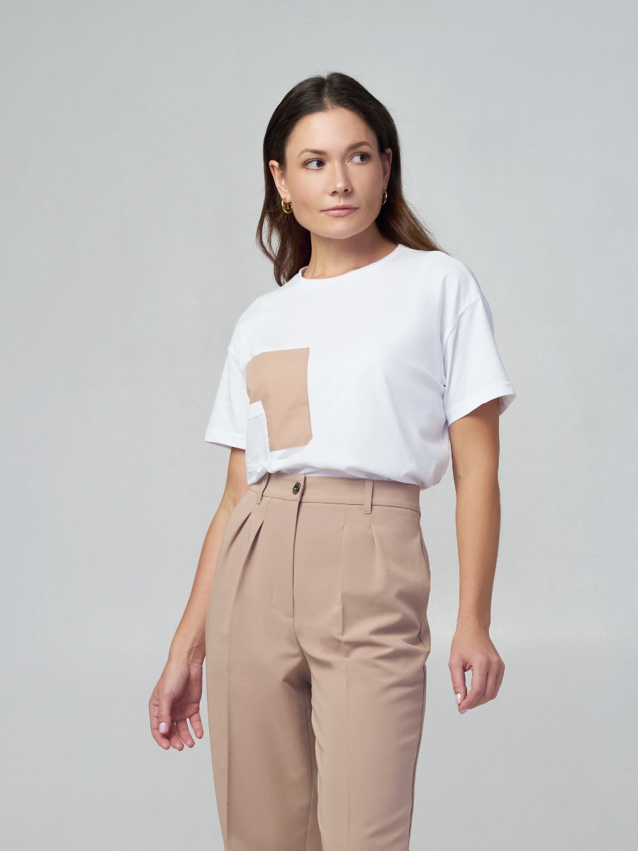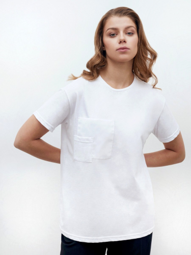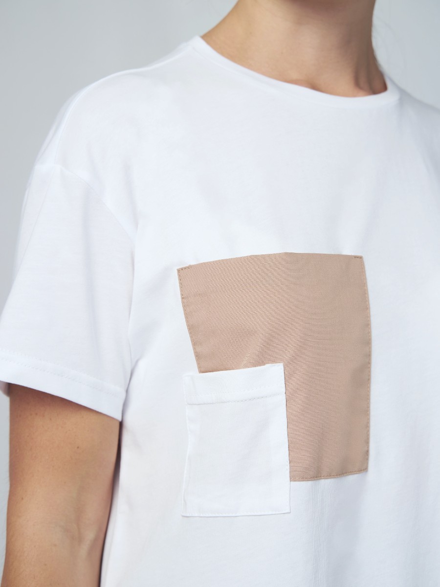Футболка женская кор.рукав T-lab TL-TK-005K-белый (бежевый карман)