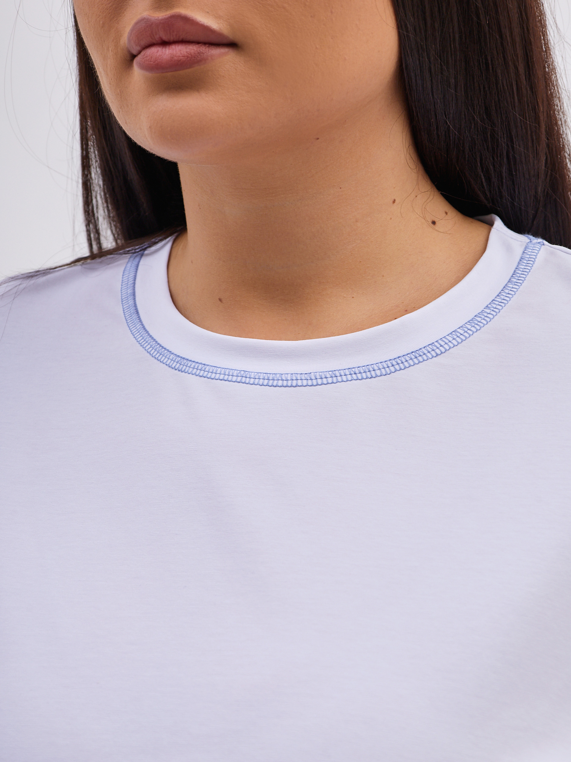 Цвет: Белый Рисунок: Без рисунка<..показать/li> Состав: 95% хлопок 5% спандекс Модель: Прямая Ворот: Круглый Силуэт: Прямой силуэт / Сlassic fit/li>